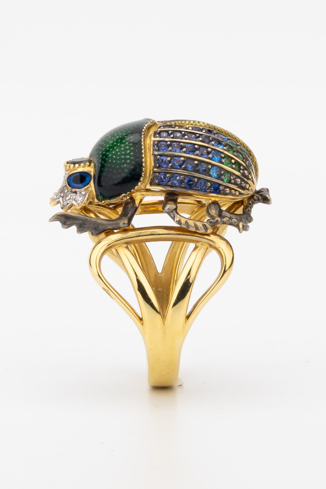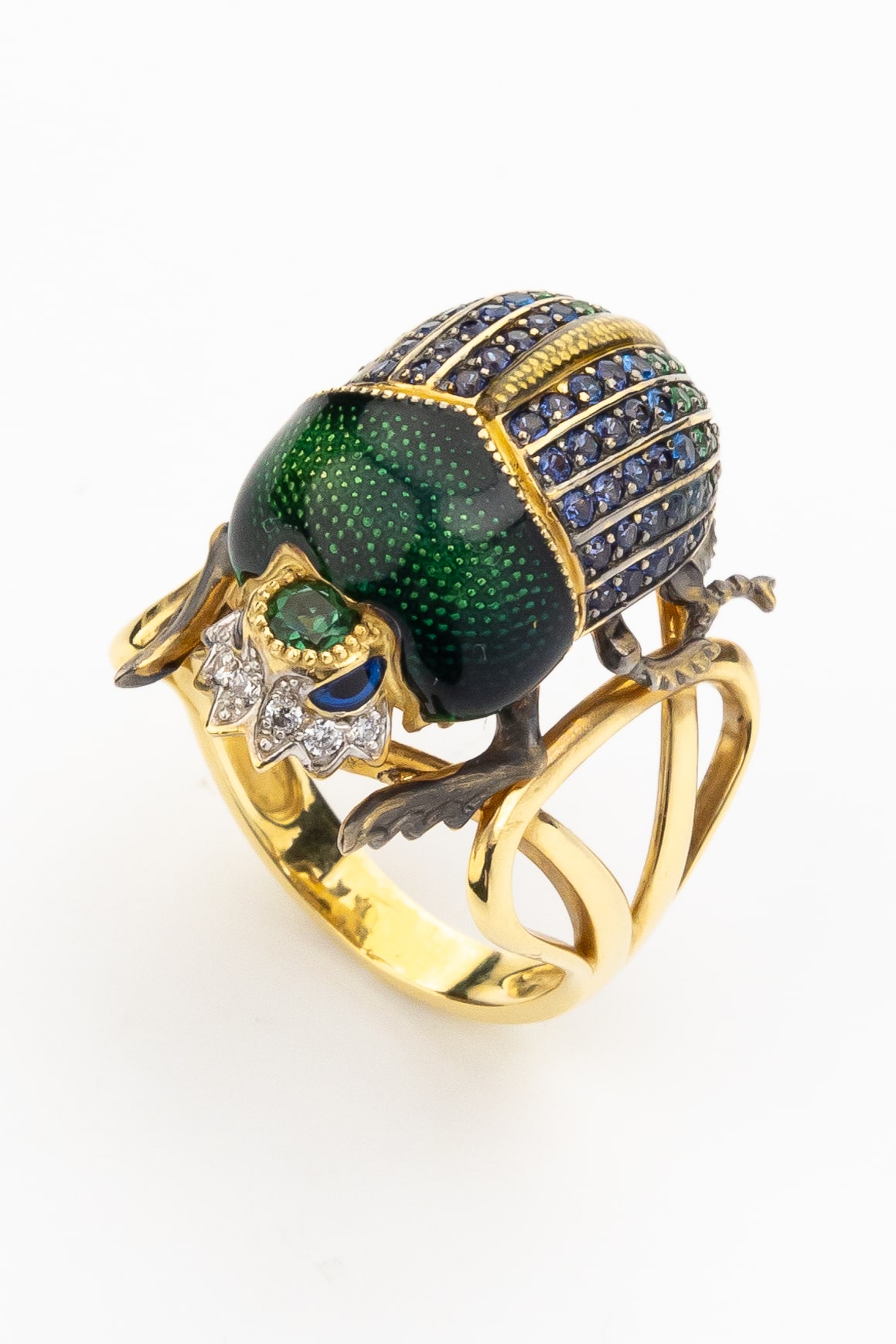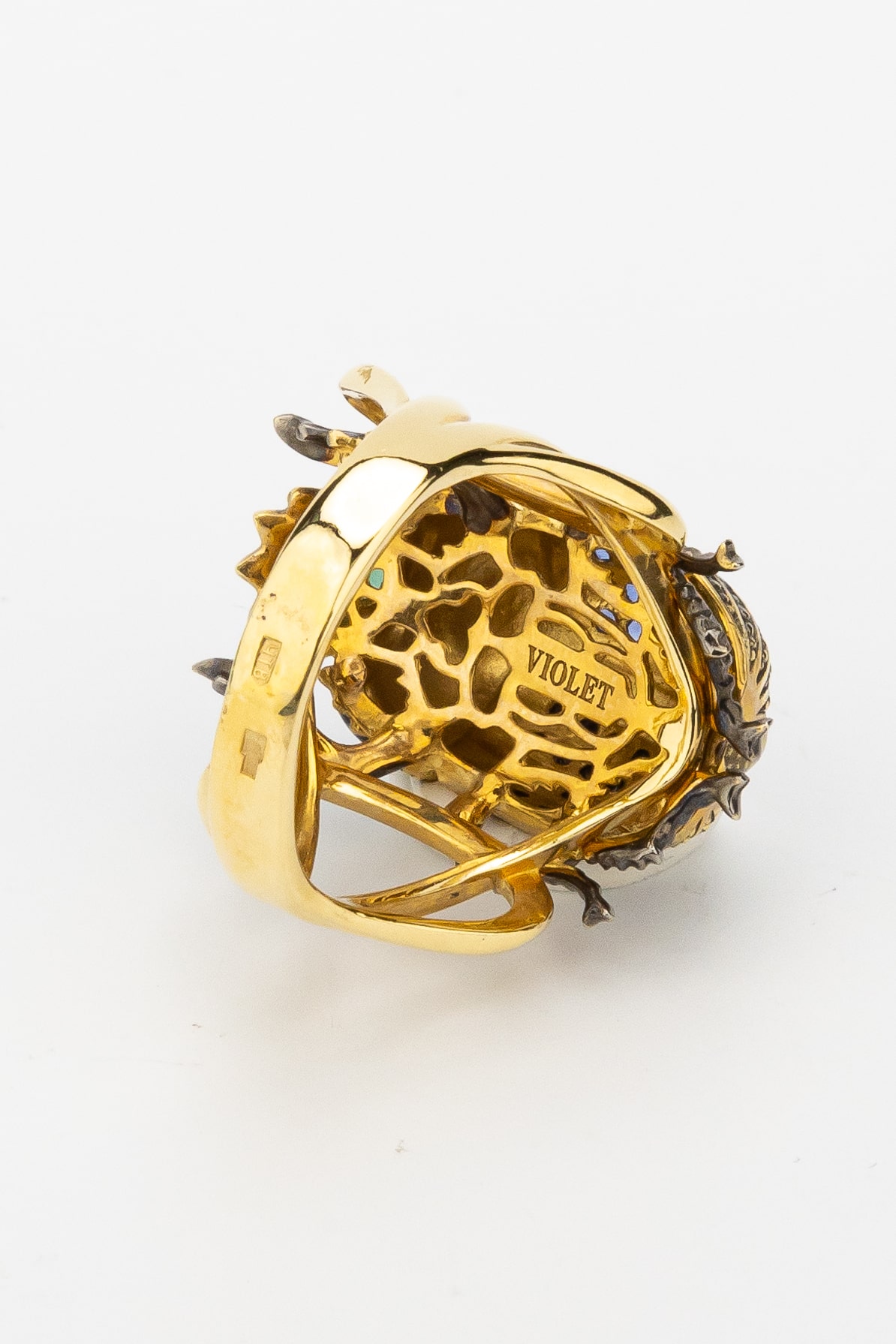 Кольцо из лимонного золота c эмаль, фианитом и турмалином