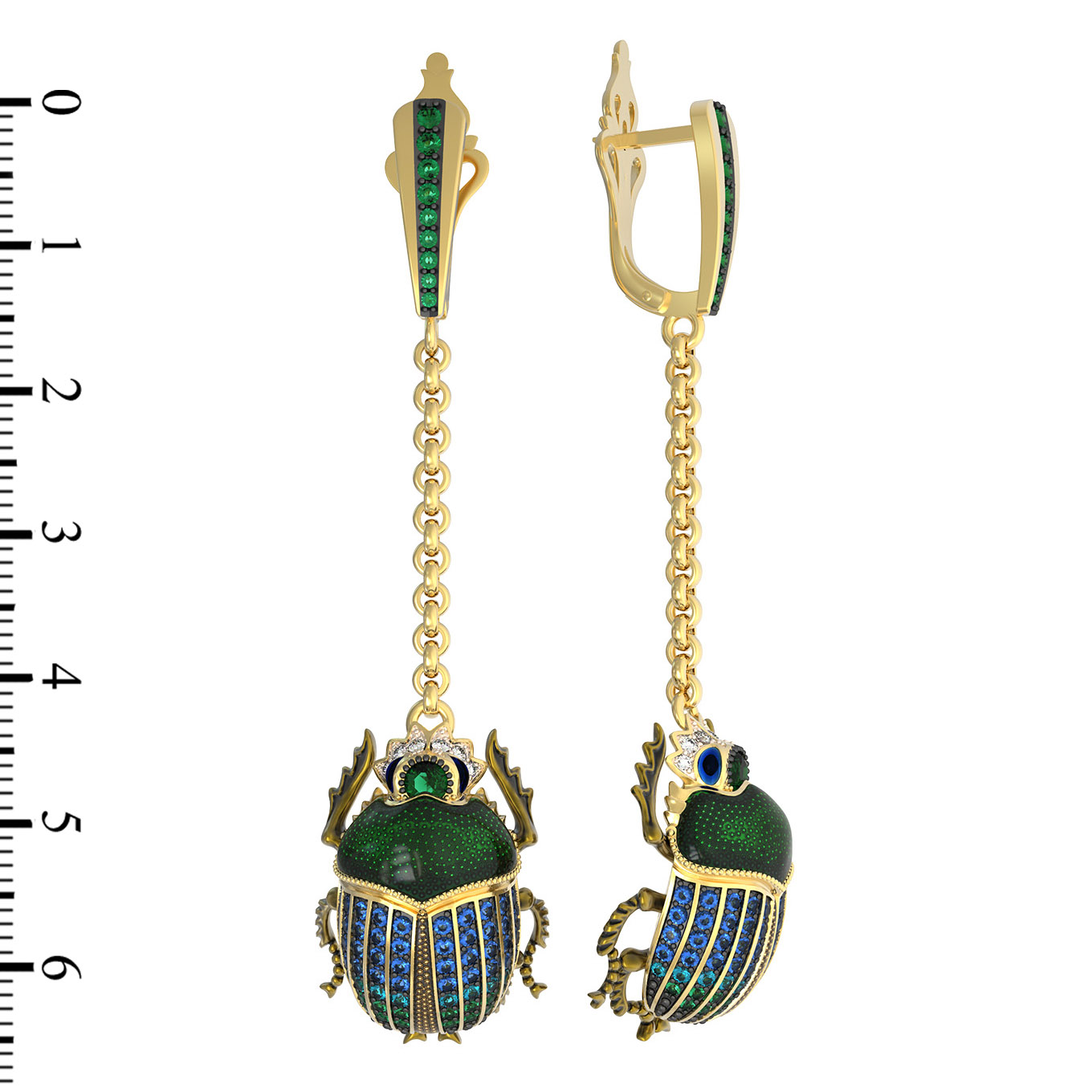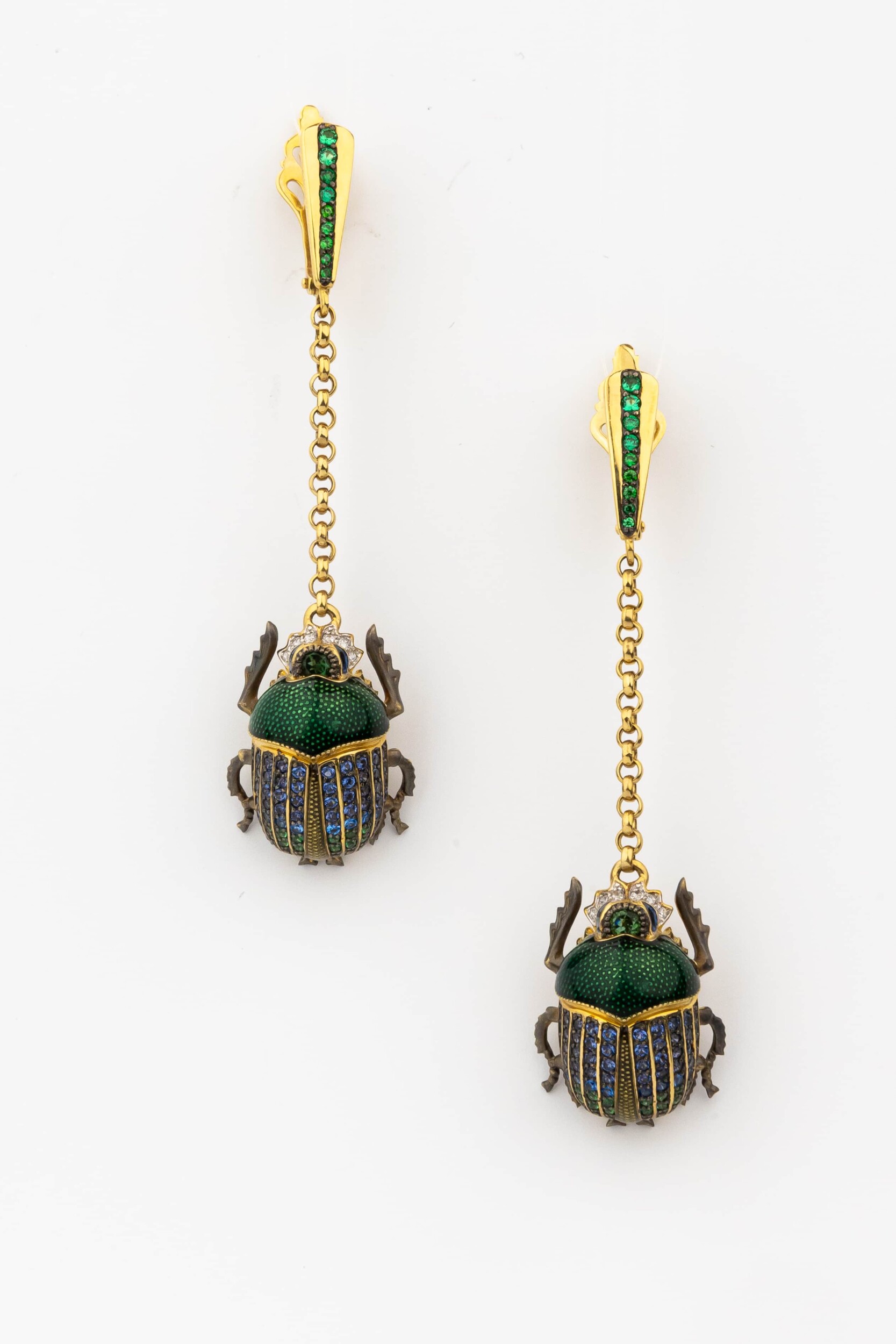 Серьги из лимонного золота c эмаль, фианитом, турмалином и сапфиром