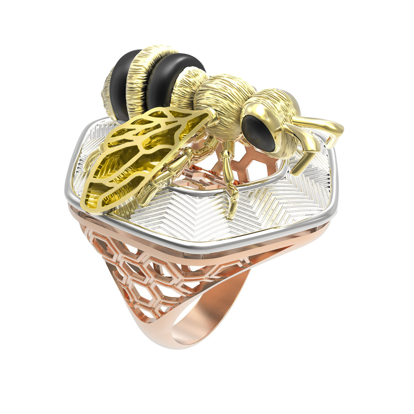 Кольцо из золота c эмаль, ониксом и эмалью