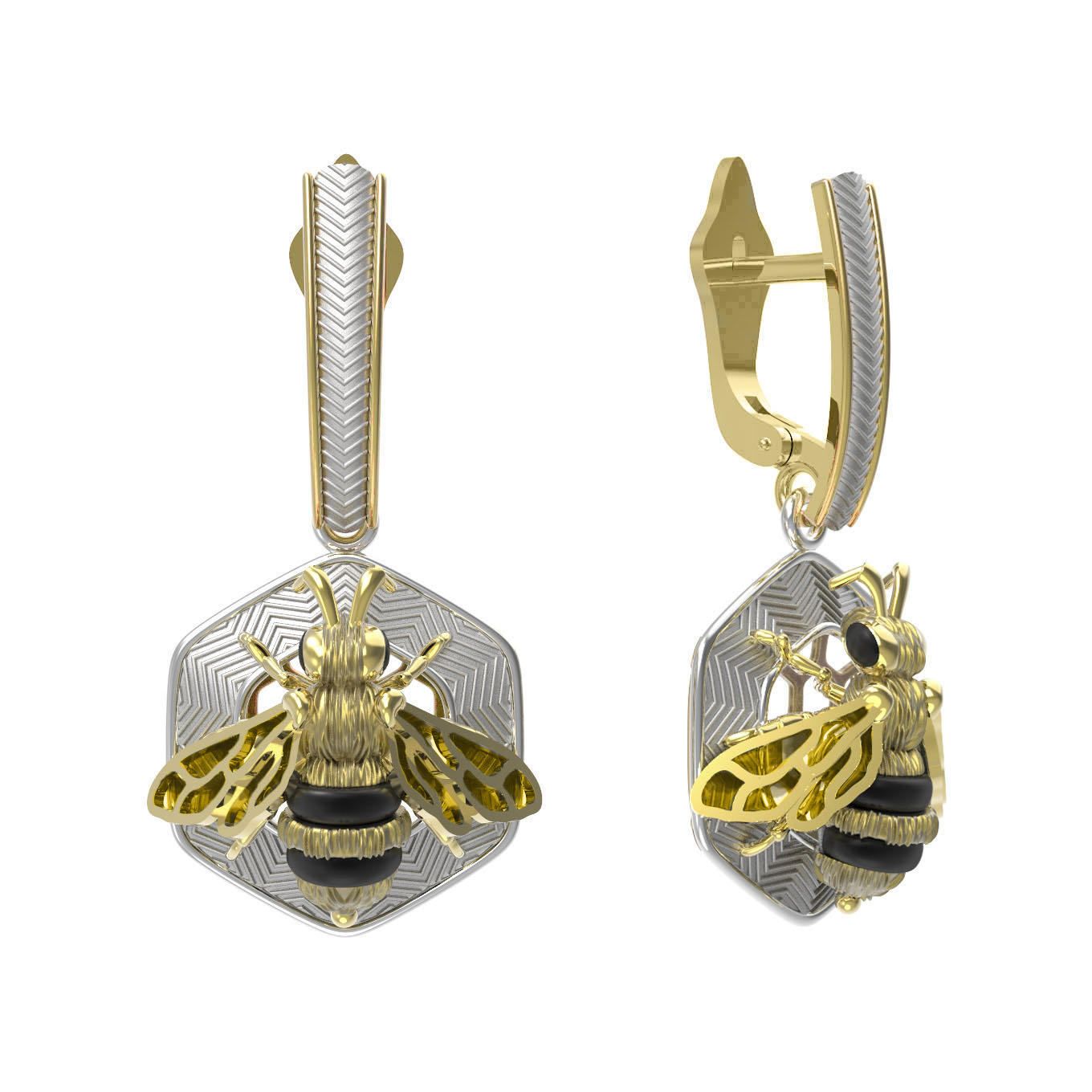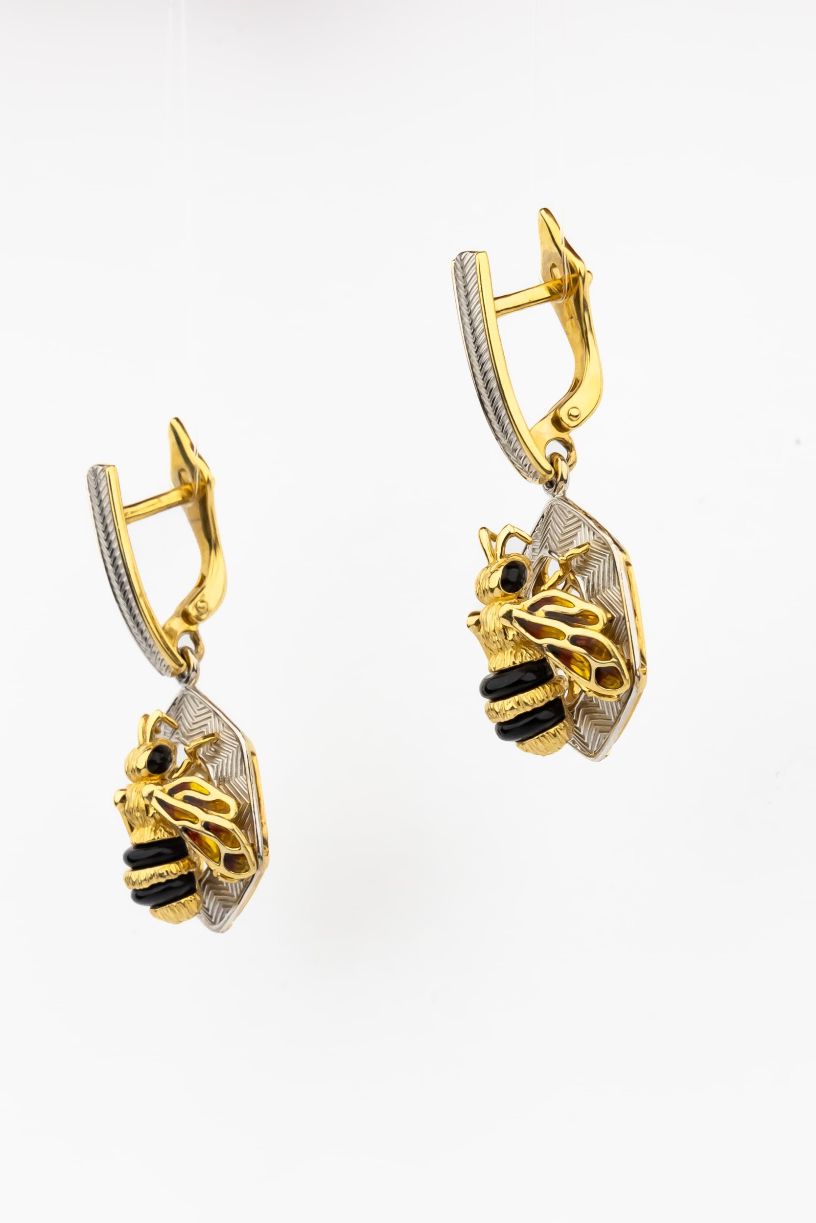 Серьги из лимонного золота c эмалью, ониксом и эмалью