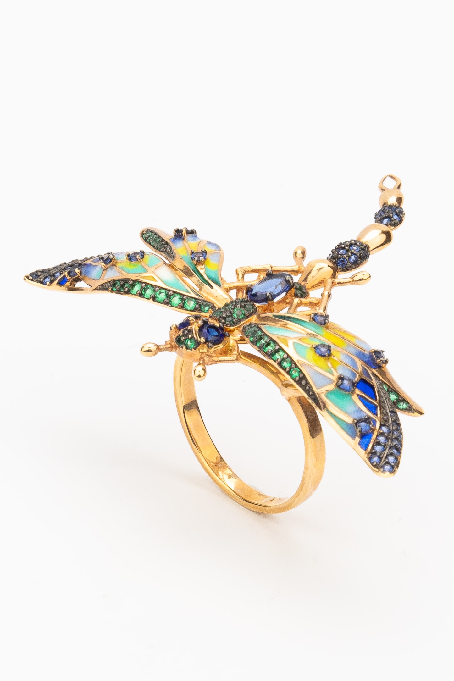 Кольцо из золота c фианитом, сапфиром и эмалью