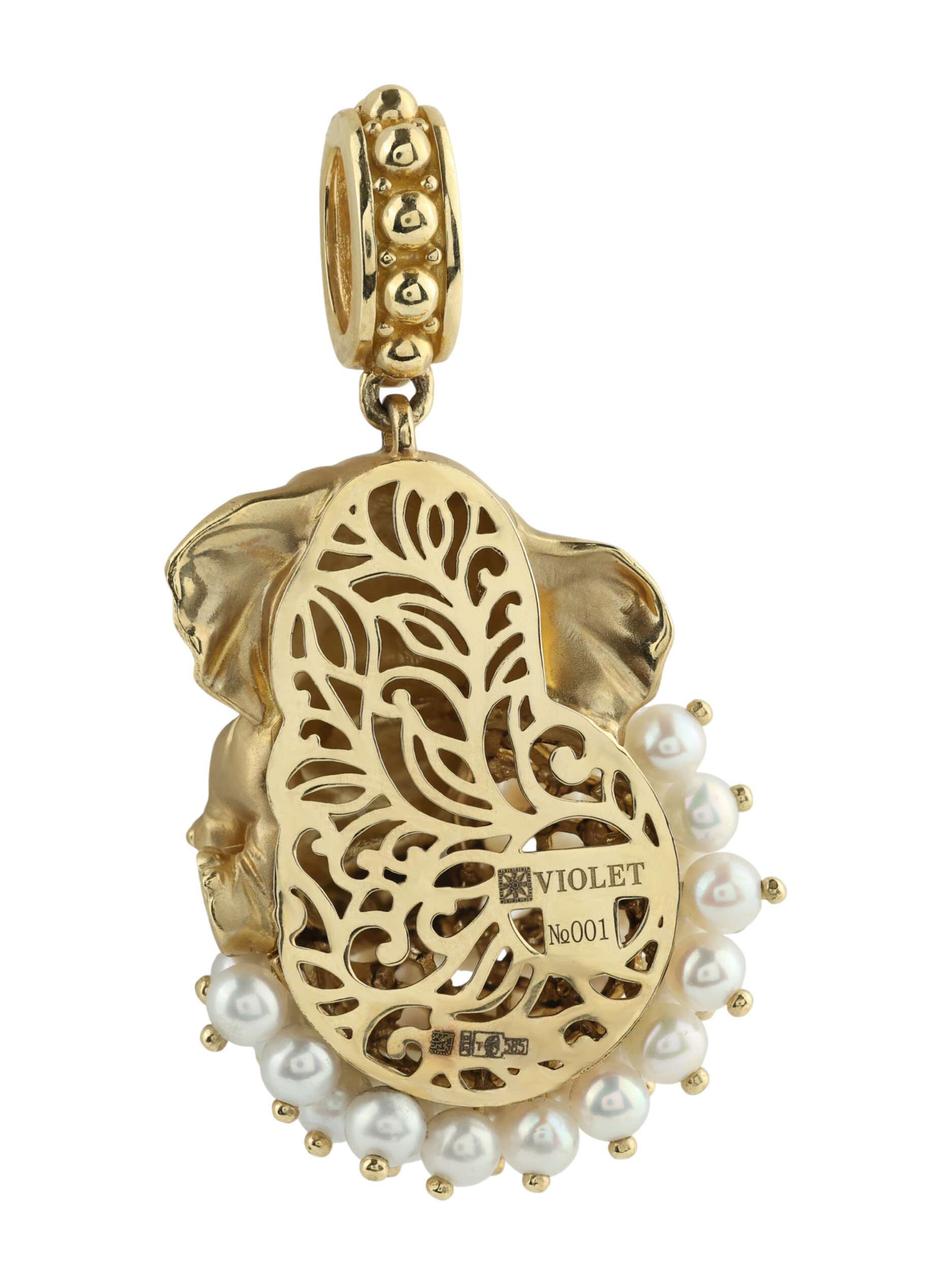 Подвеска из лимонного золота c эмаль и жемчугом