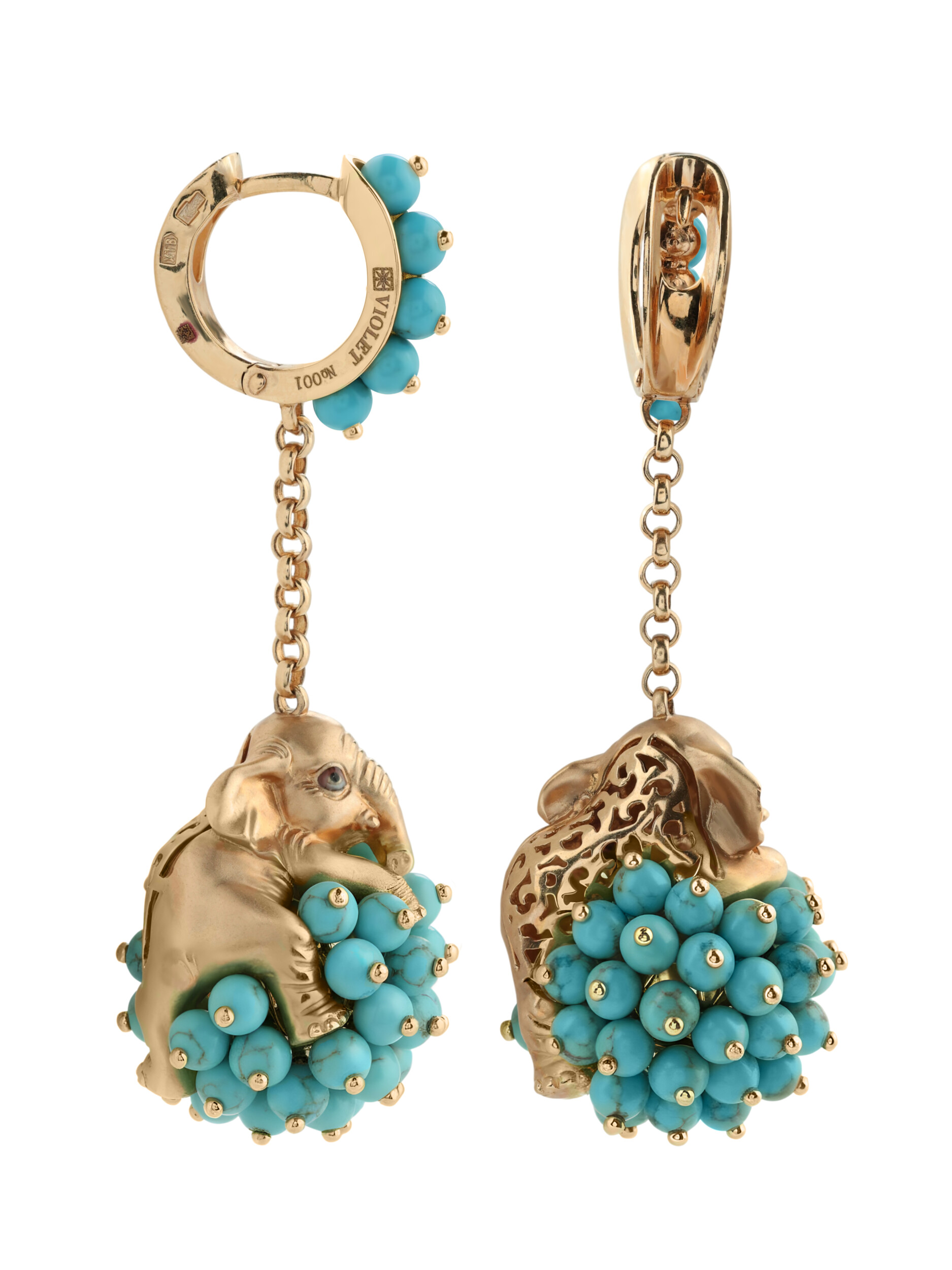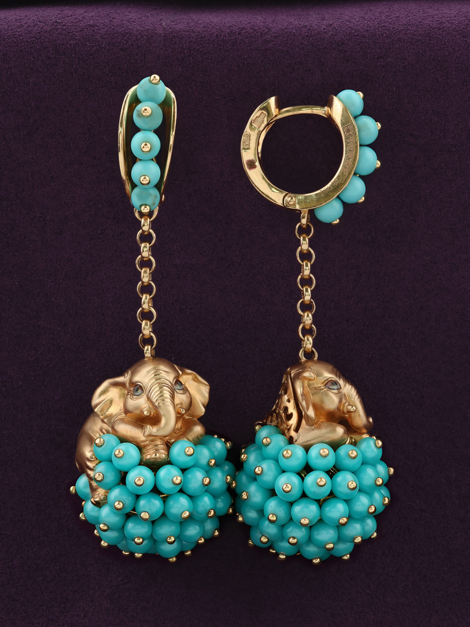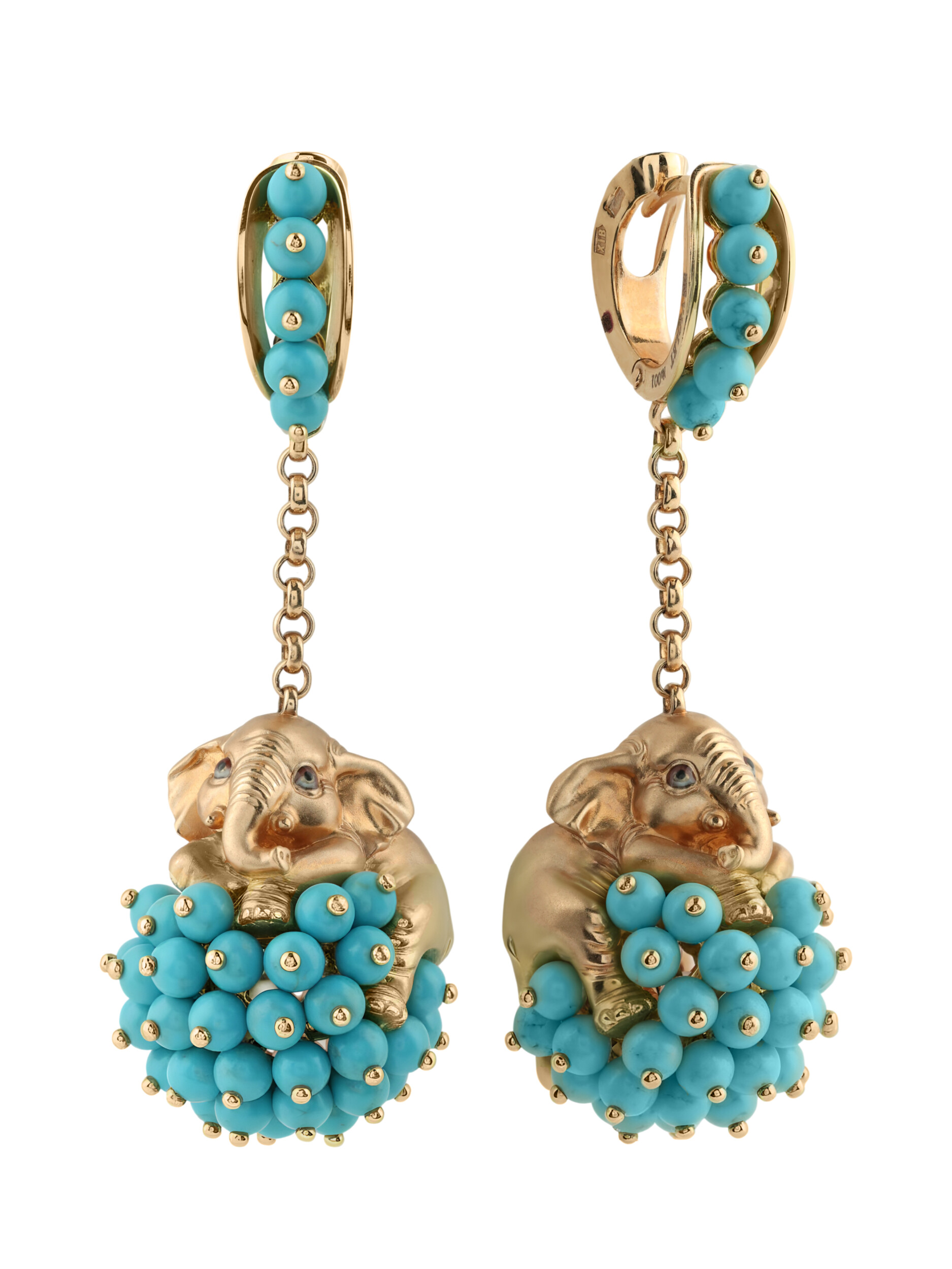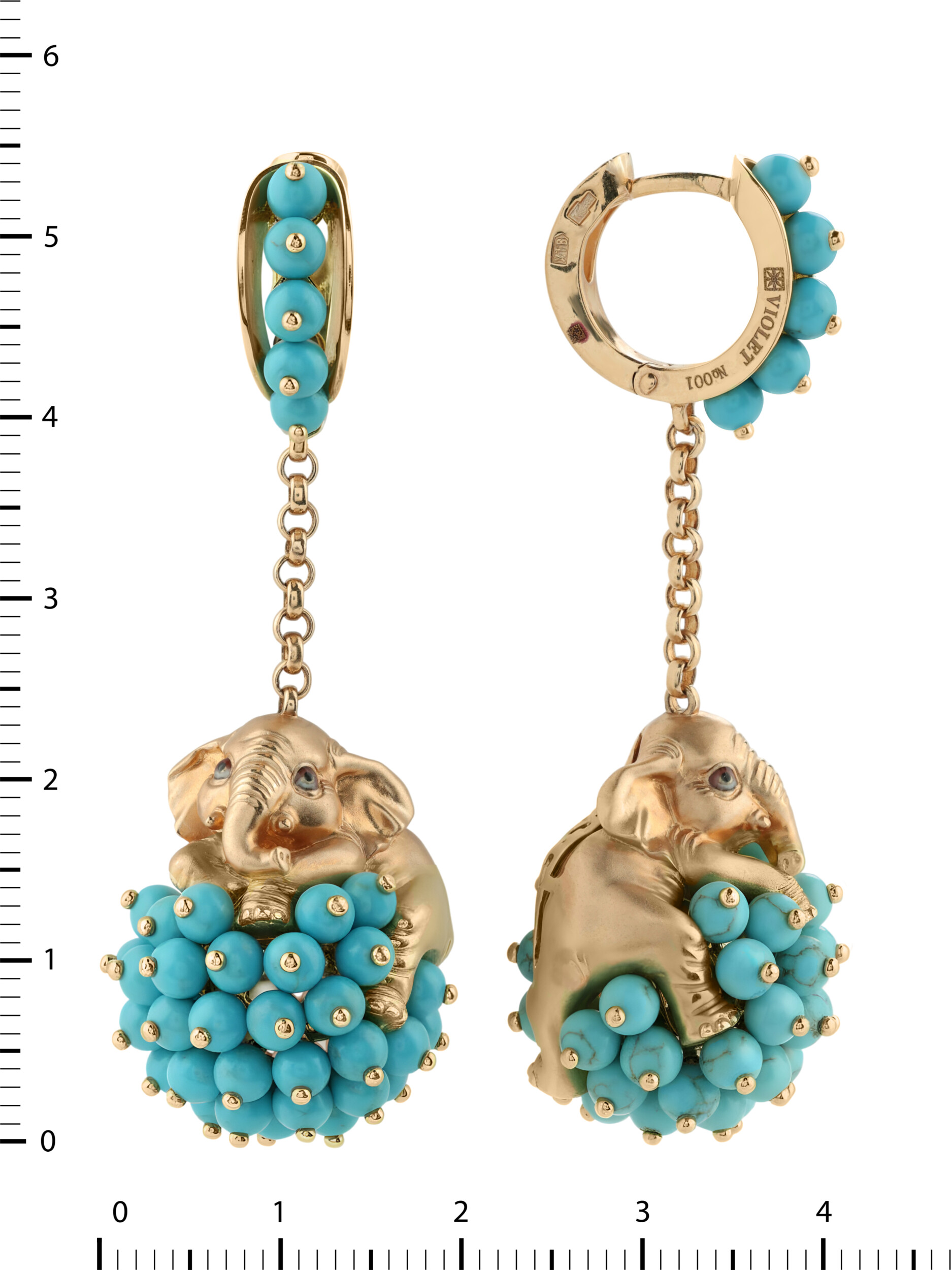 Серьги из золота c эмалью и бирюзой