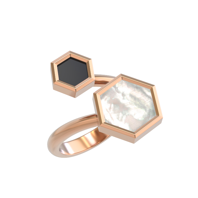 Кольцо из золота c ониксом и перламутром