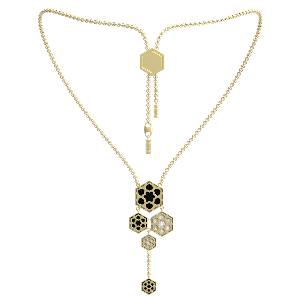 Колье из лимонного золота c ониксом и перламутром