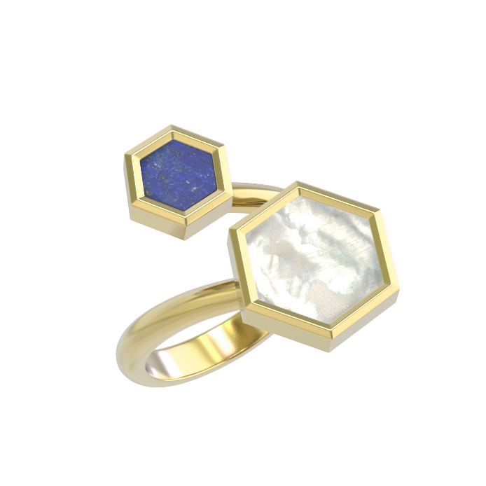 Кольцо из лимонного золота c лазуритом и перламутром