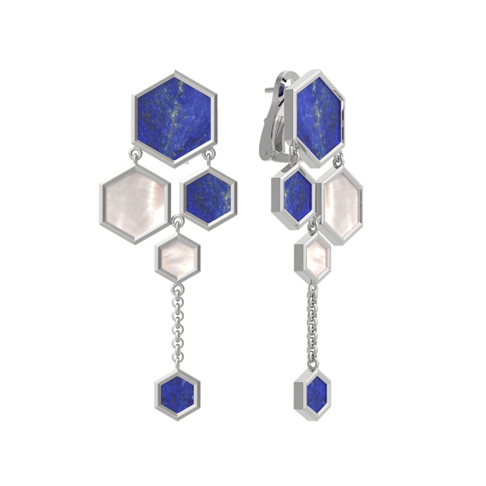 Серьги из белого золота c лазуритом и перламутром