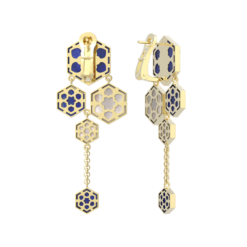 Серьги из лимонного золота c лазуритом и перламутром