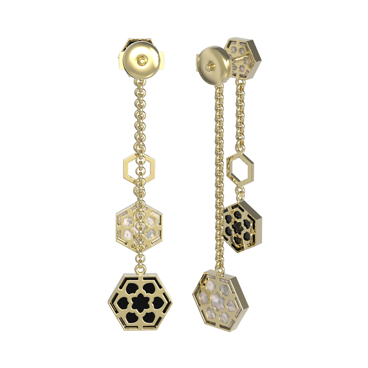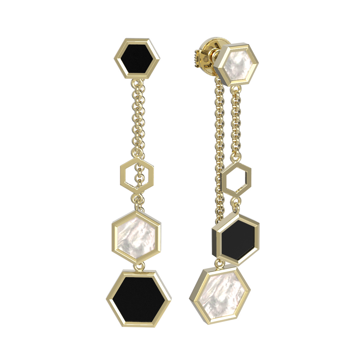 Серьги из лимонного золота c ониксом и перламутром