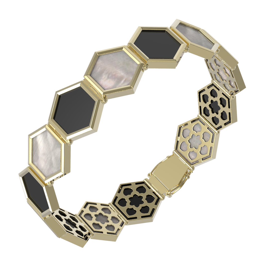 Браслет из лимонного золота c ониксом и перламутром