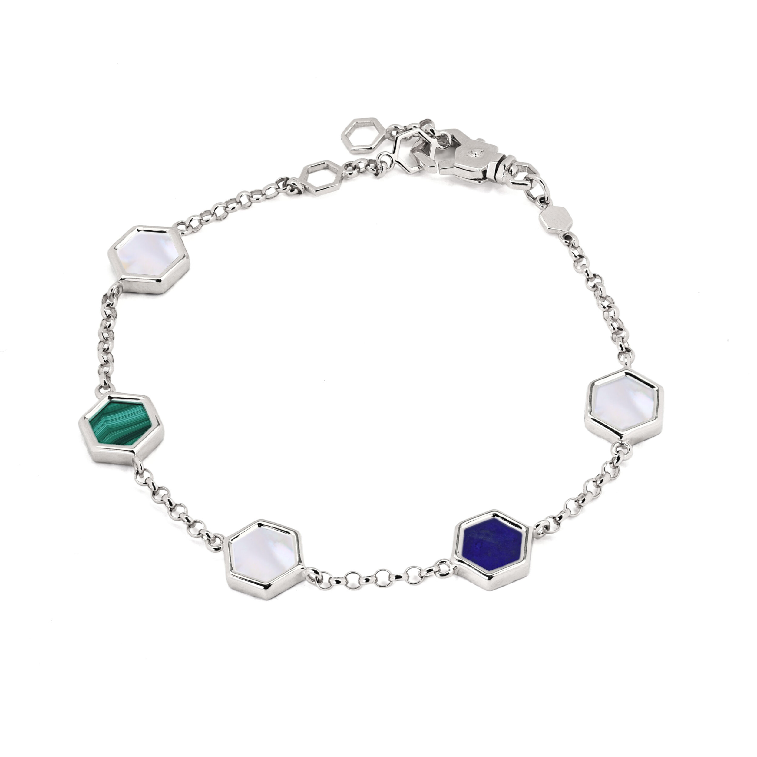 Браслет из белого золота c лазуритом, малахитом и перламутром