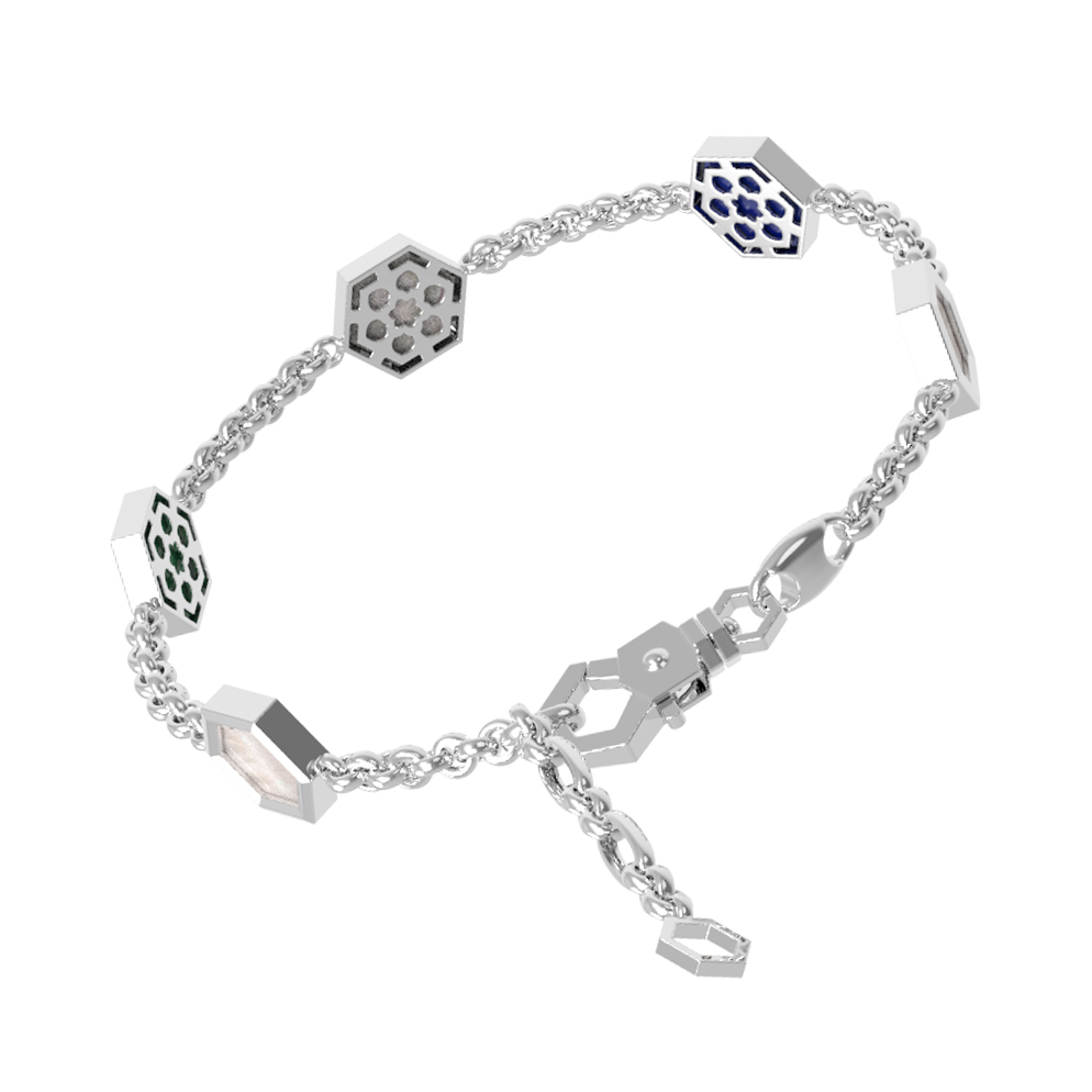 Браслет из белого золота c лазуритом, малахитом и перламутром