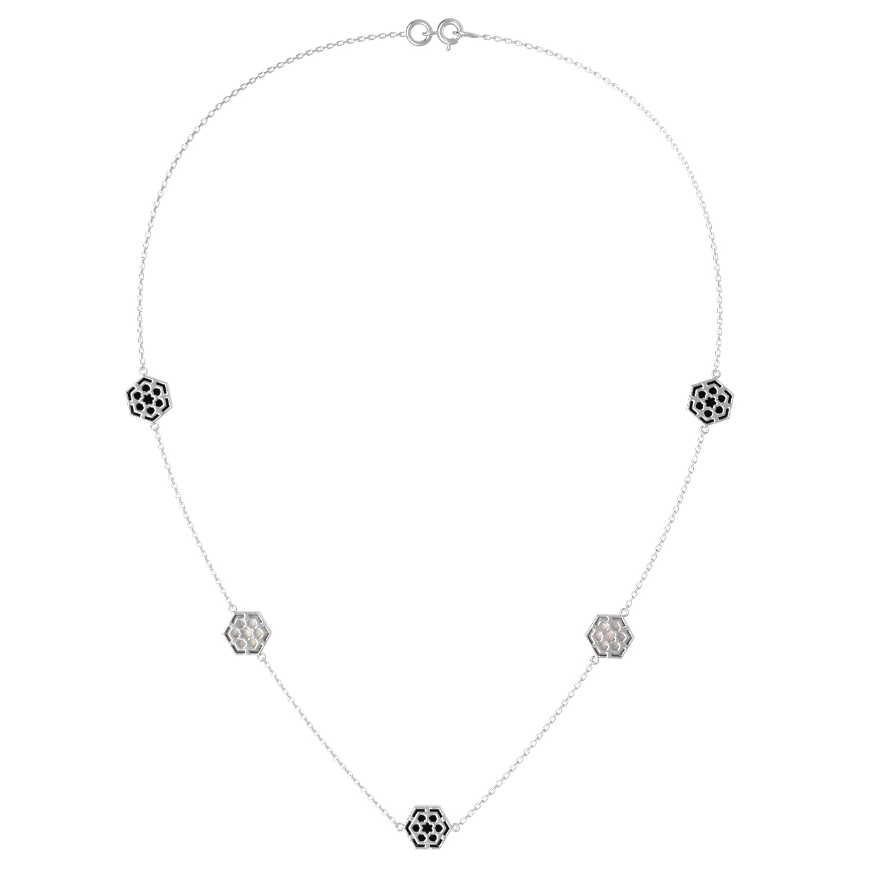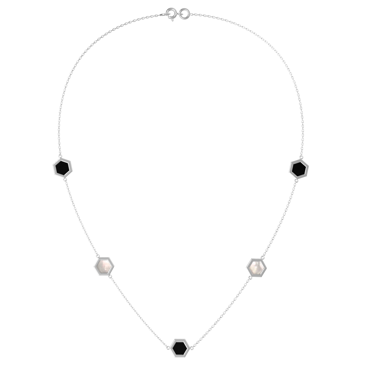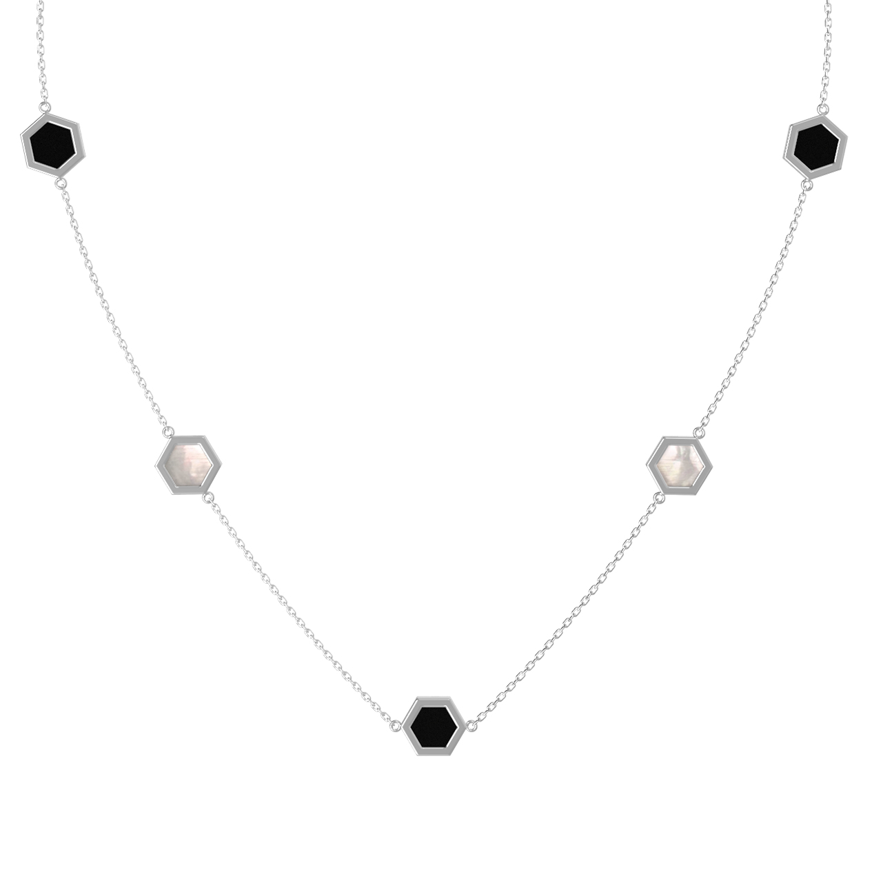 Колье из белого золота c ониксом и перламутром