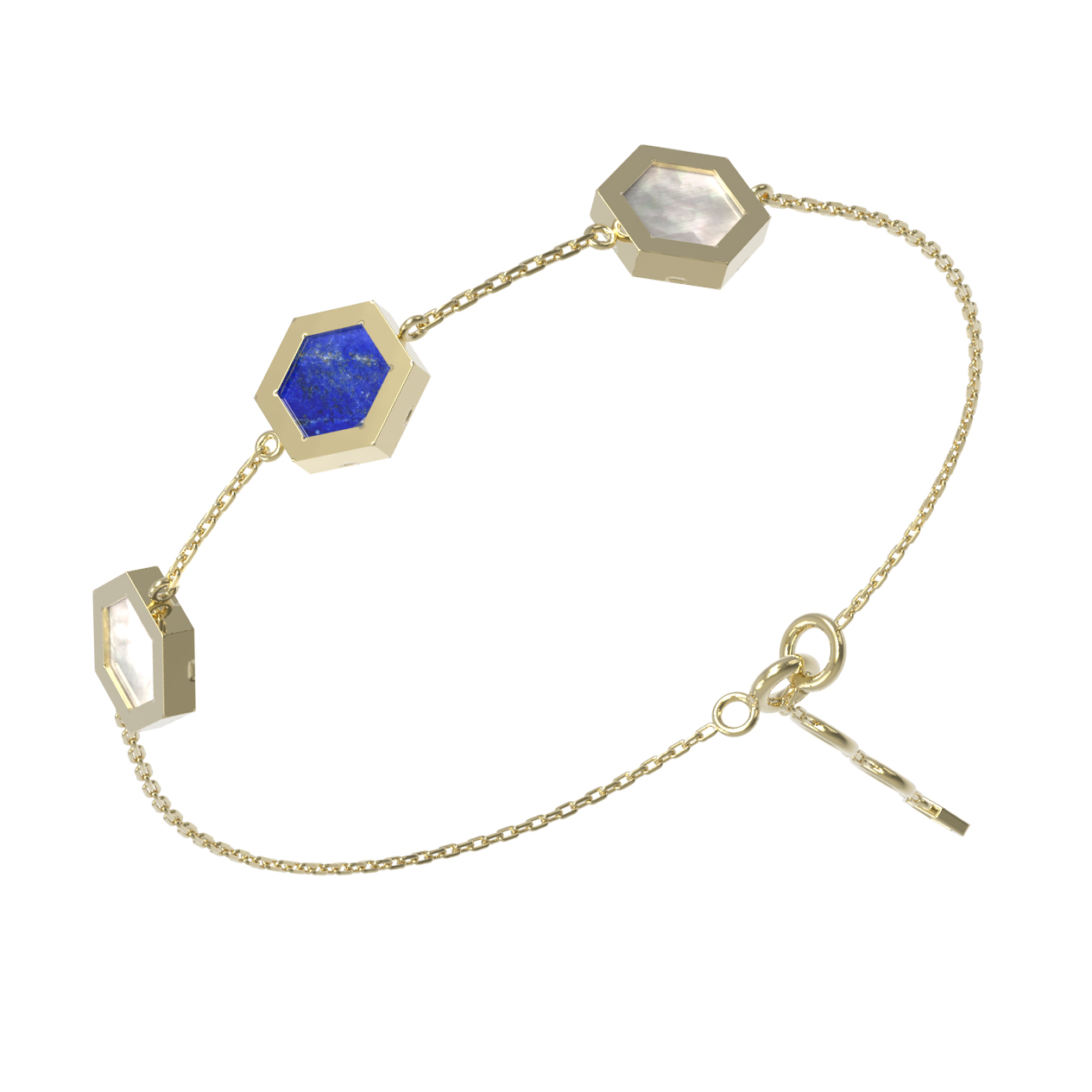 Браслет из лимонного золота c лазуритом и перламутром
