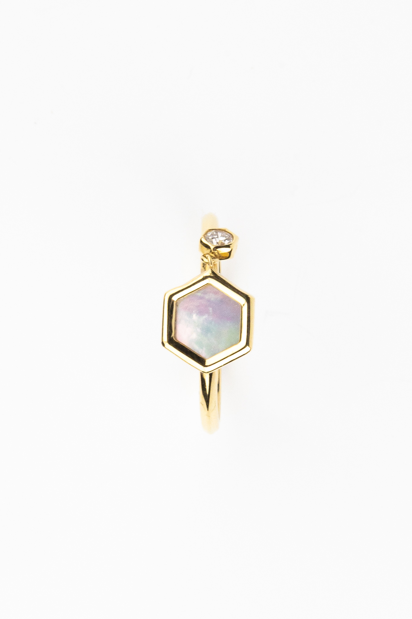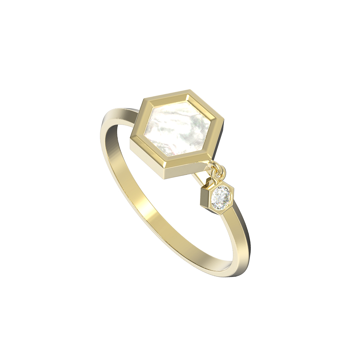 Кольцо из лимонного золота c бриллиантами и перламутром