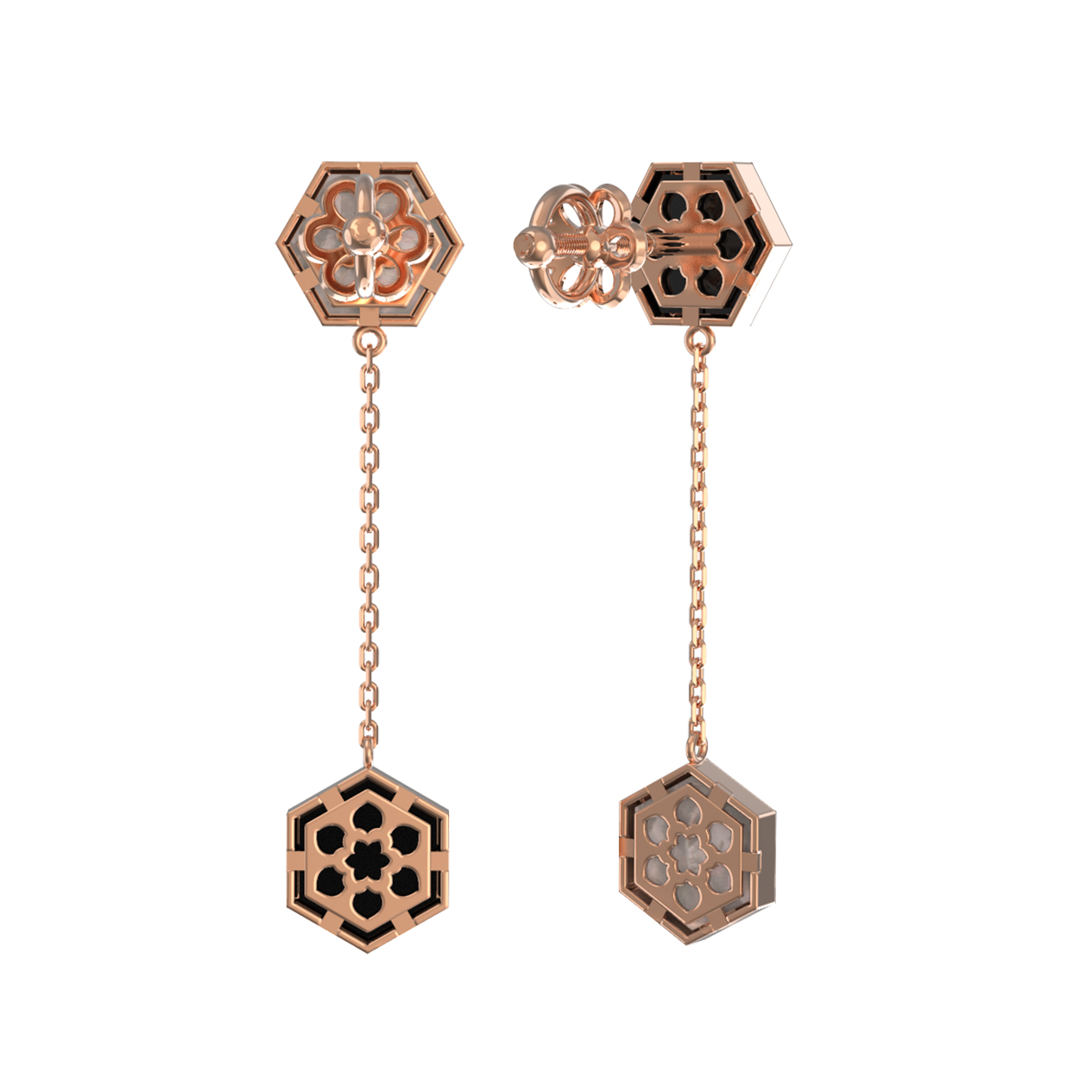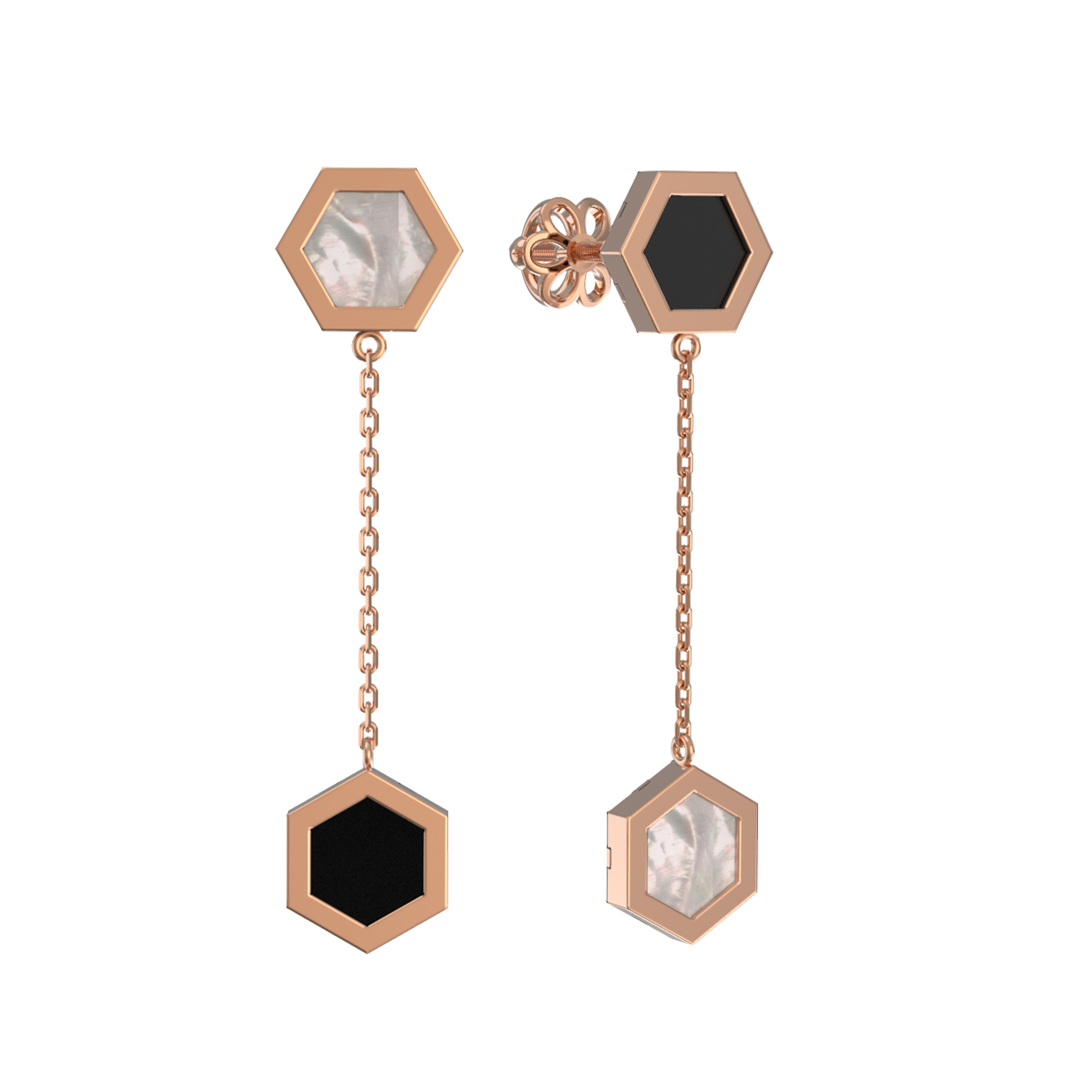 Серьги из золота c ониксом и перламутром