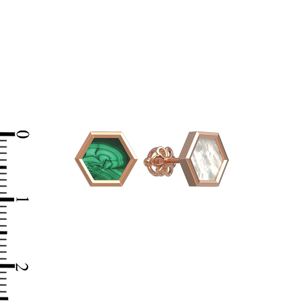 Серьги из золота c малахитом и перламутром