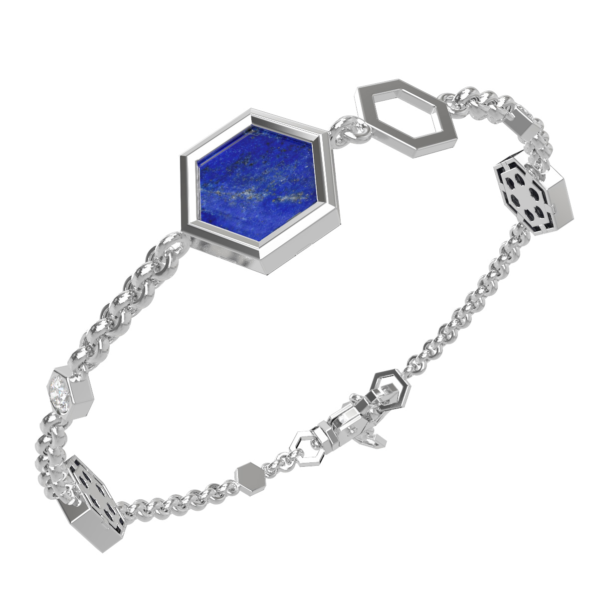 Браслет из белого золота c бриллиантами, лазуритом и перламутром