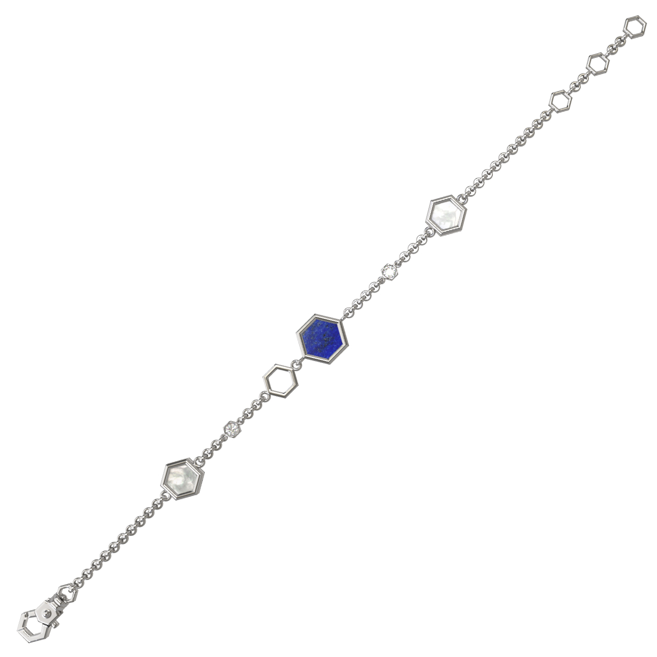 Браслет из белого золота c бриллиантами, лазуритом и перламутром