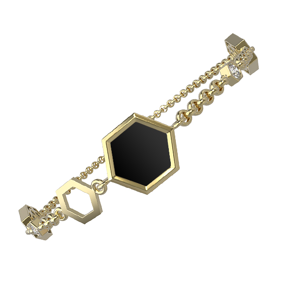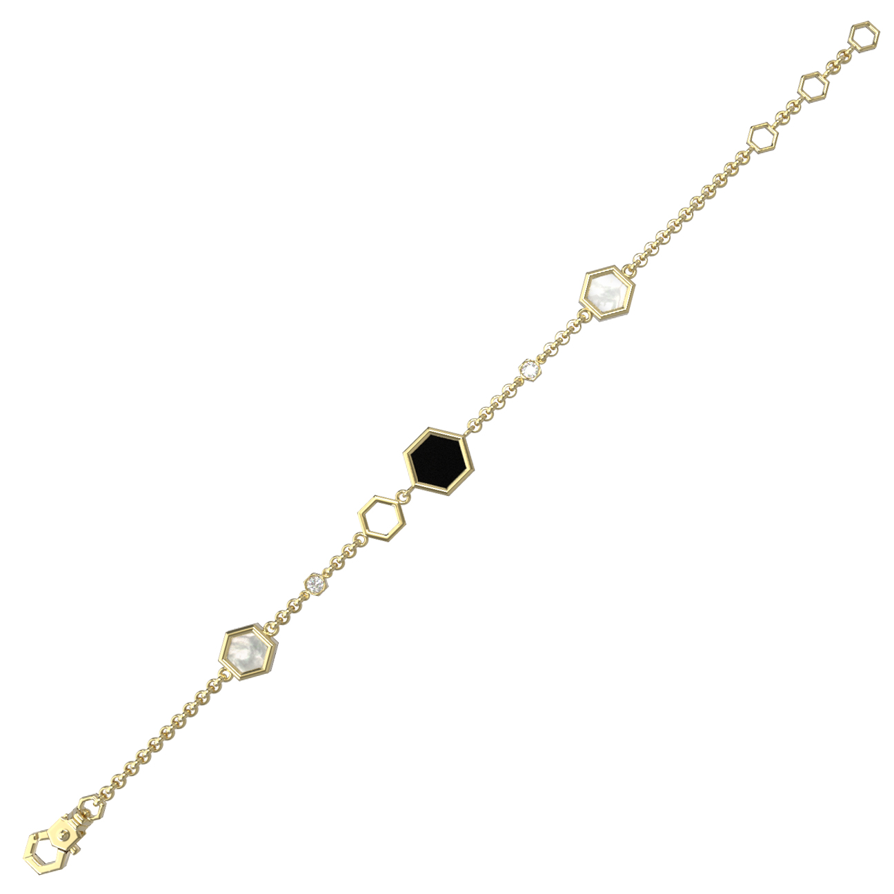 Браслет из лимонного золота c бриллиантами, ониксом и перламутром