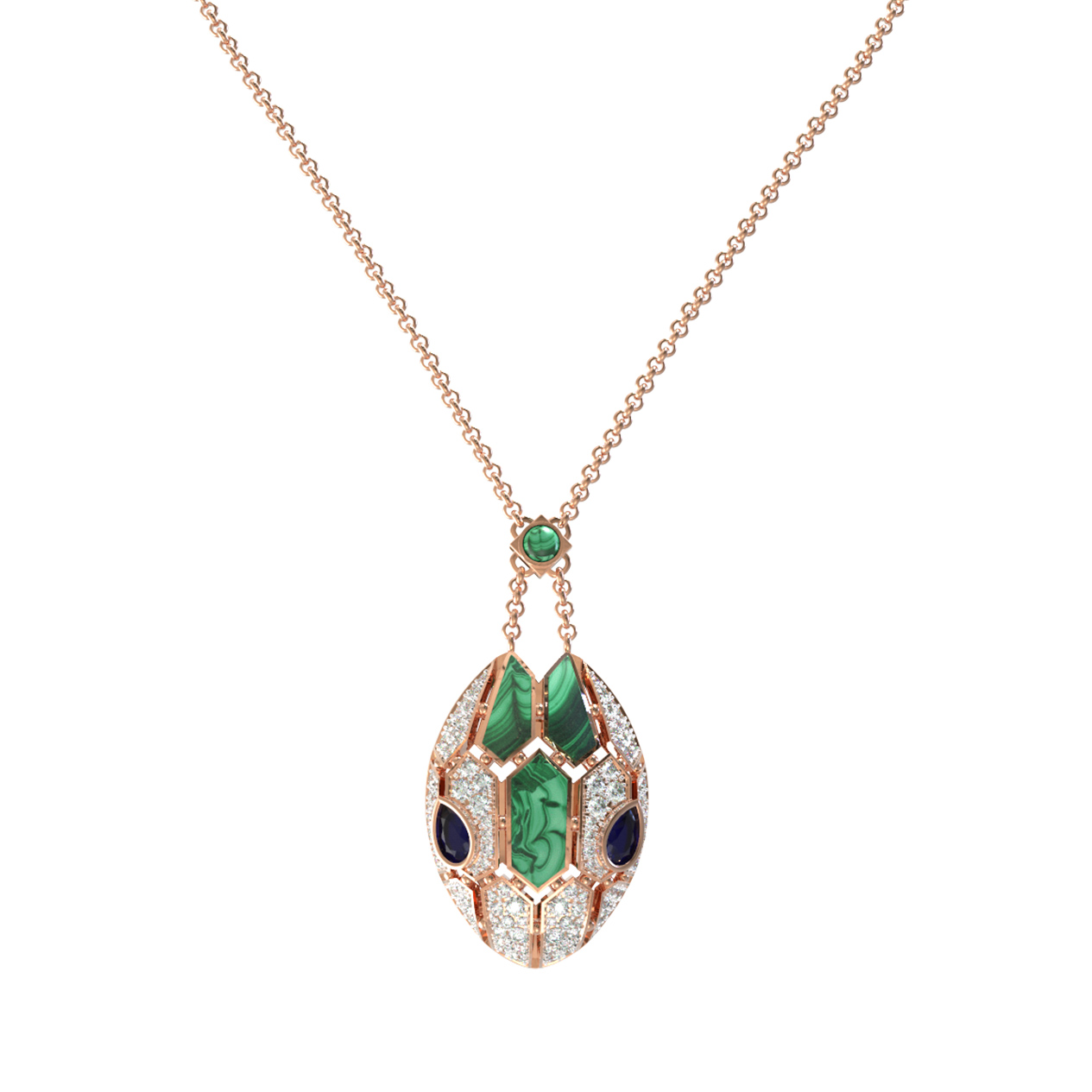 Колье из золота c бриллиантами, сапфиром и малахитом