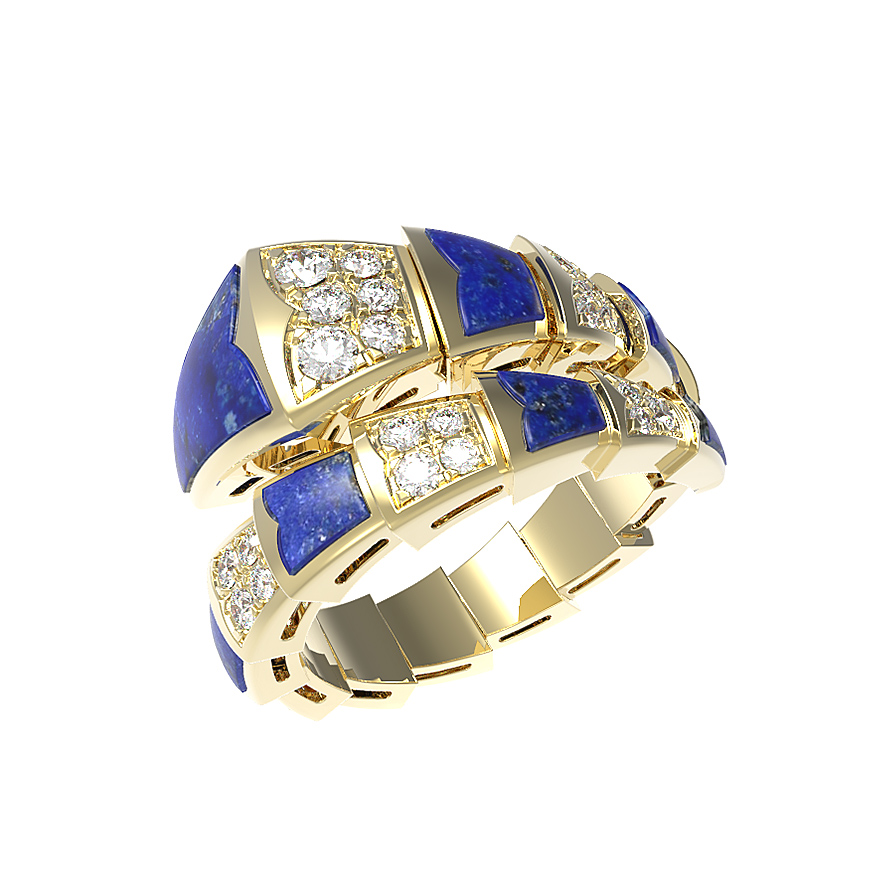 Кольцо из лимонного золота c бриллиантами и лазуритом