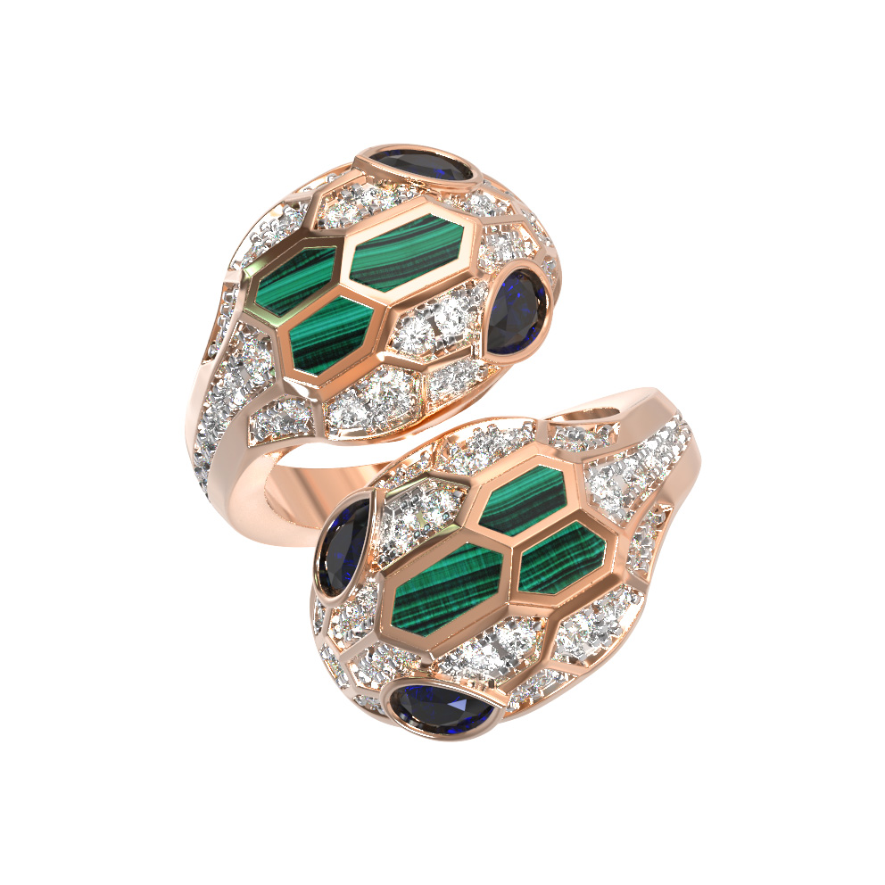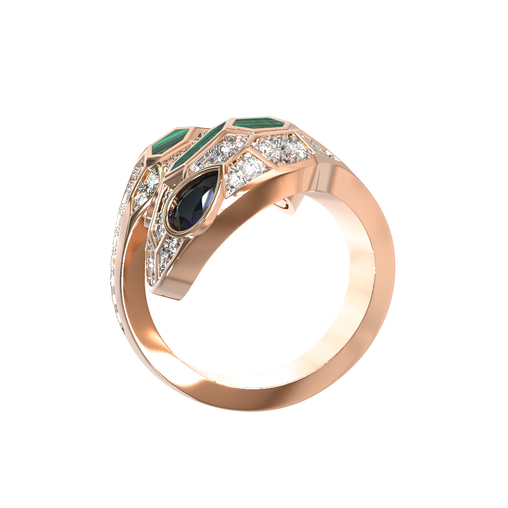 Кольцо из золота c бриллиантами, сапфиром и малахитом