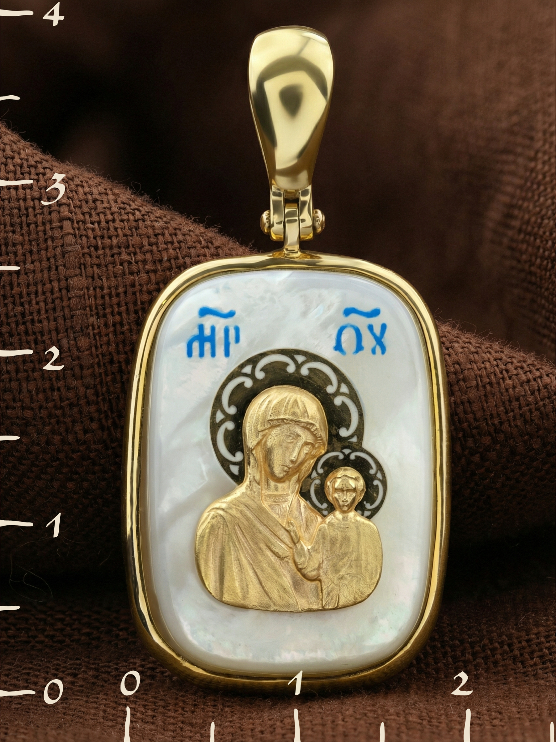 Образок из лимонного золота c эмаль и перламутром