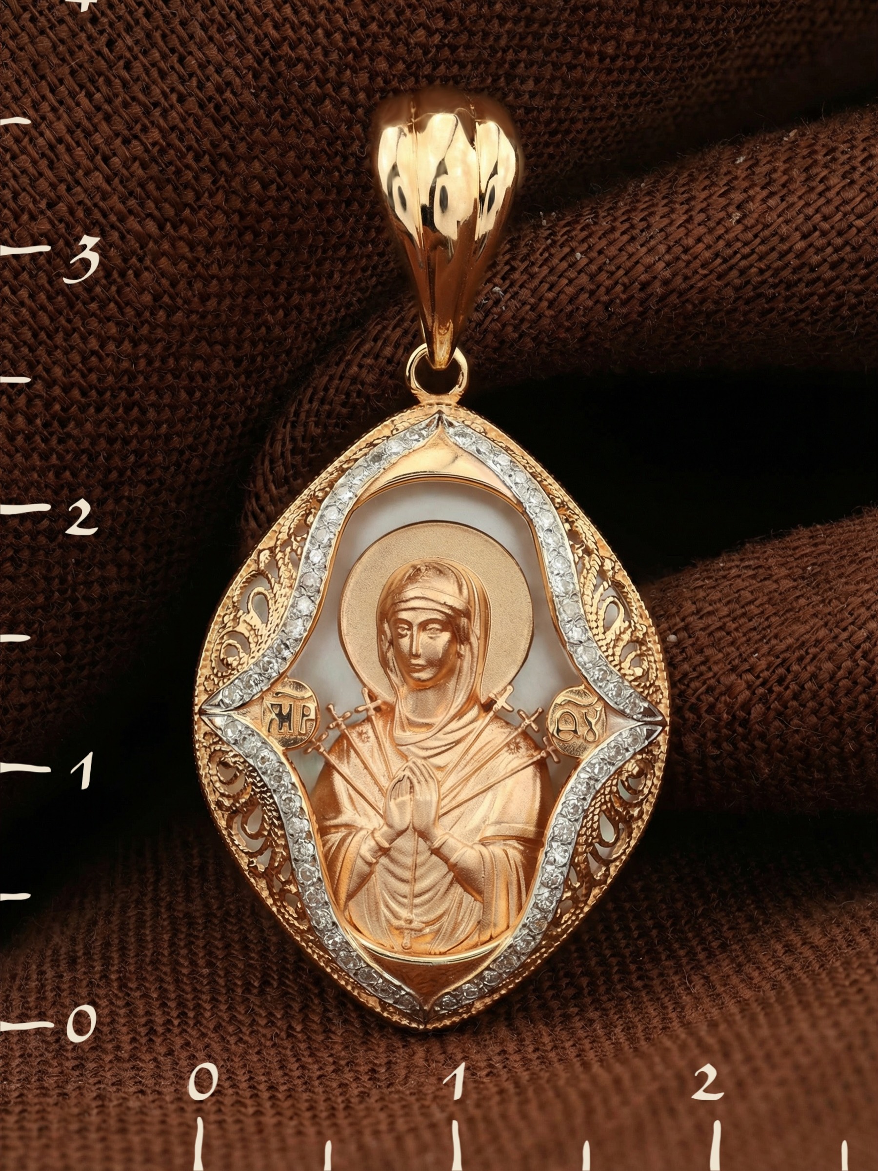 Образок из золота c бриллиантами и перламутром