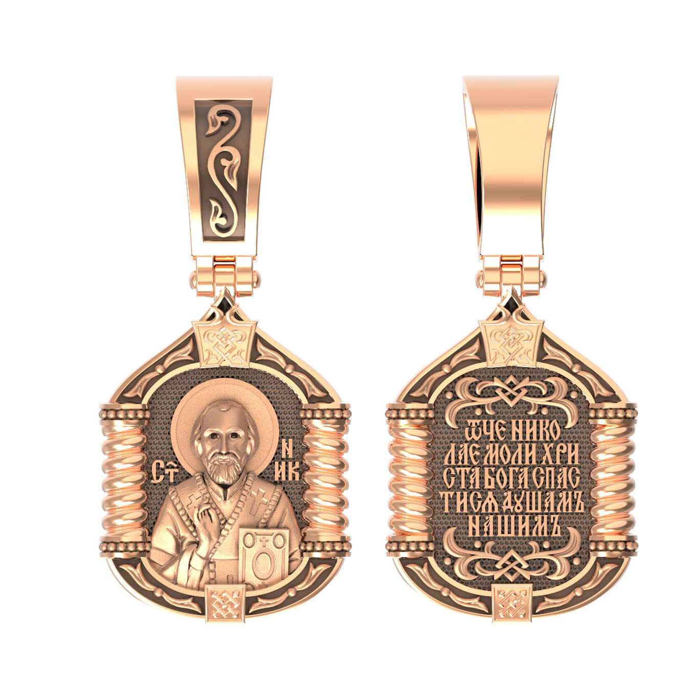 На лицевой стороне образка изображен Святитель Николай архиепископ Мир Ликийских, Чудотворец. Он является одним из самых почитаемых святых в православном мире. Святитель Николай родился во второй половине III века в Малой Азии в Ликийском городе Патары. С рождения Божий Угодник проявлял необыкновенные дарования. Сохранилось Предание, что во время крещения он, никем не поддерживаемый, простоял в купели три часа. Приняв сан священника, святитель Николай стал проводить еще более строгую подвижническую жизнь. Избранник Божий Николай стал вершиной всех добродетелей, поднятой до райской высоты. С кем из величайших праведников не сравнялся он образом духов­ной красоты, кому из них не последовал в своих деяниях и чудотворениях? Вся жизнь святого Николая — это служение Богу. Много великих и преславных чудес сотворил великий Святитель Николай Угодник. Он помогал сущим в бедах, укрощал штормы, спасал от потопления и выносил на сушу из глубины морской, освобождал из плена и приносил освобожденных домой, избавлял от уз и темницы, защищал от посечения мечом, освобождал от смерти и подавал многим различные исцеления, слепым прозрение, хромым хождение, глухим слух, немым дар слова.