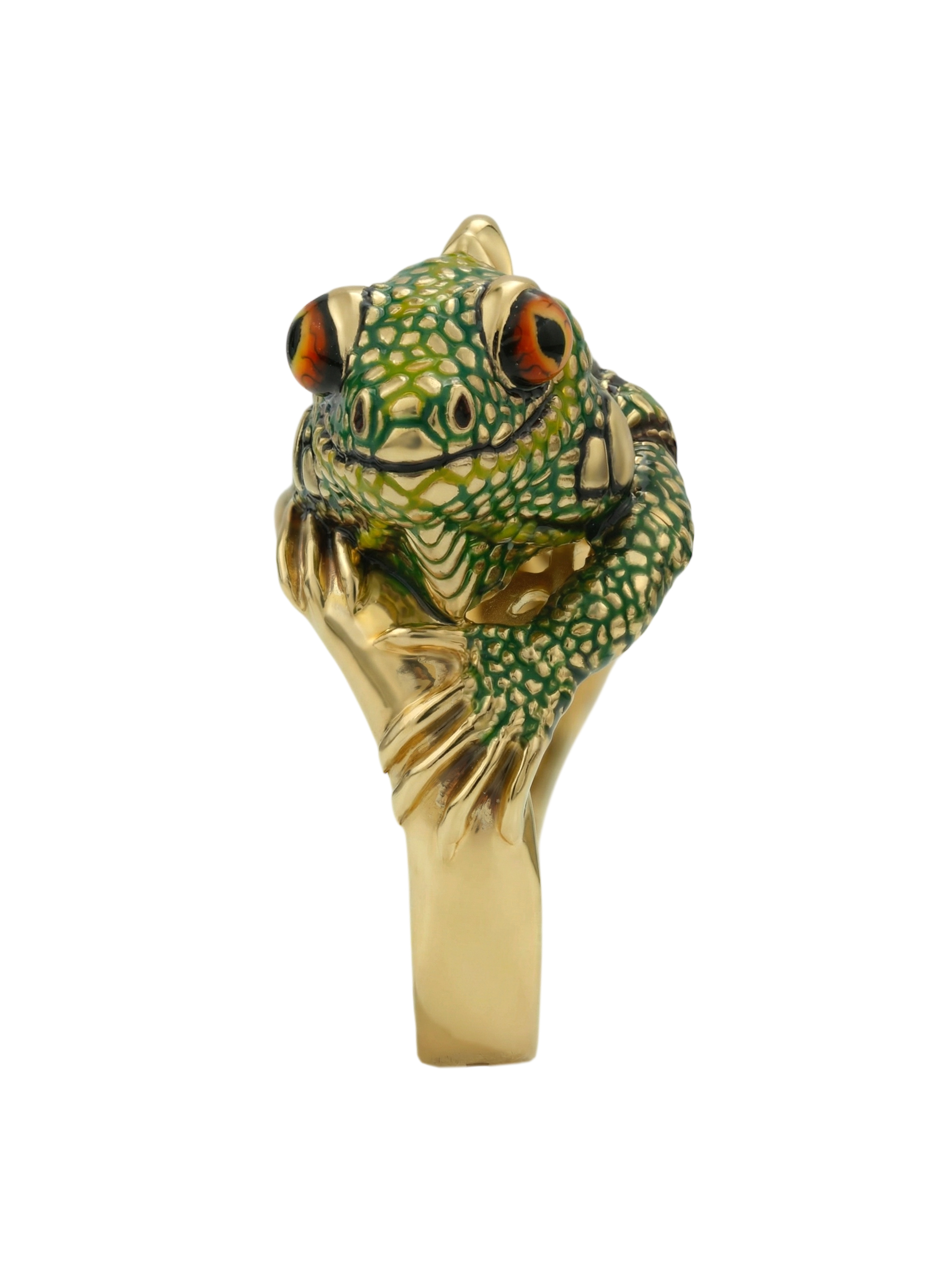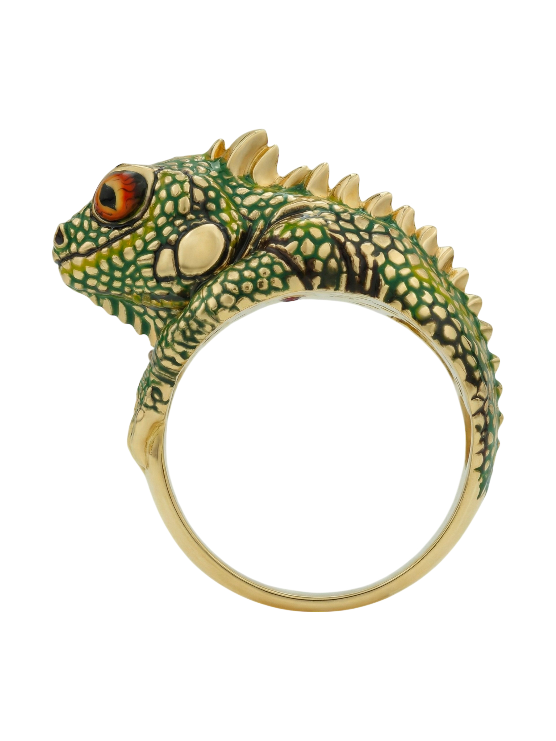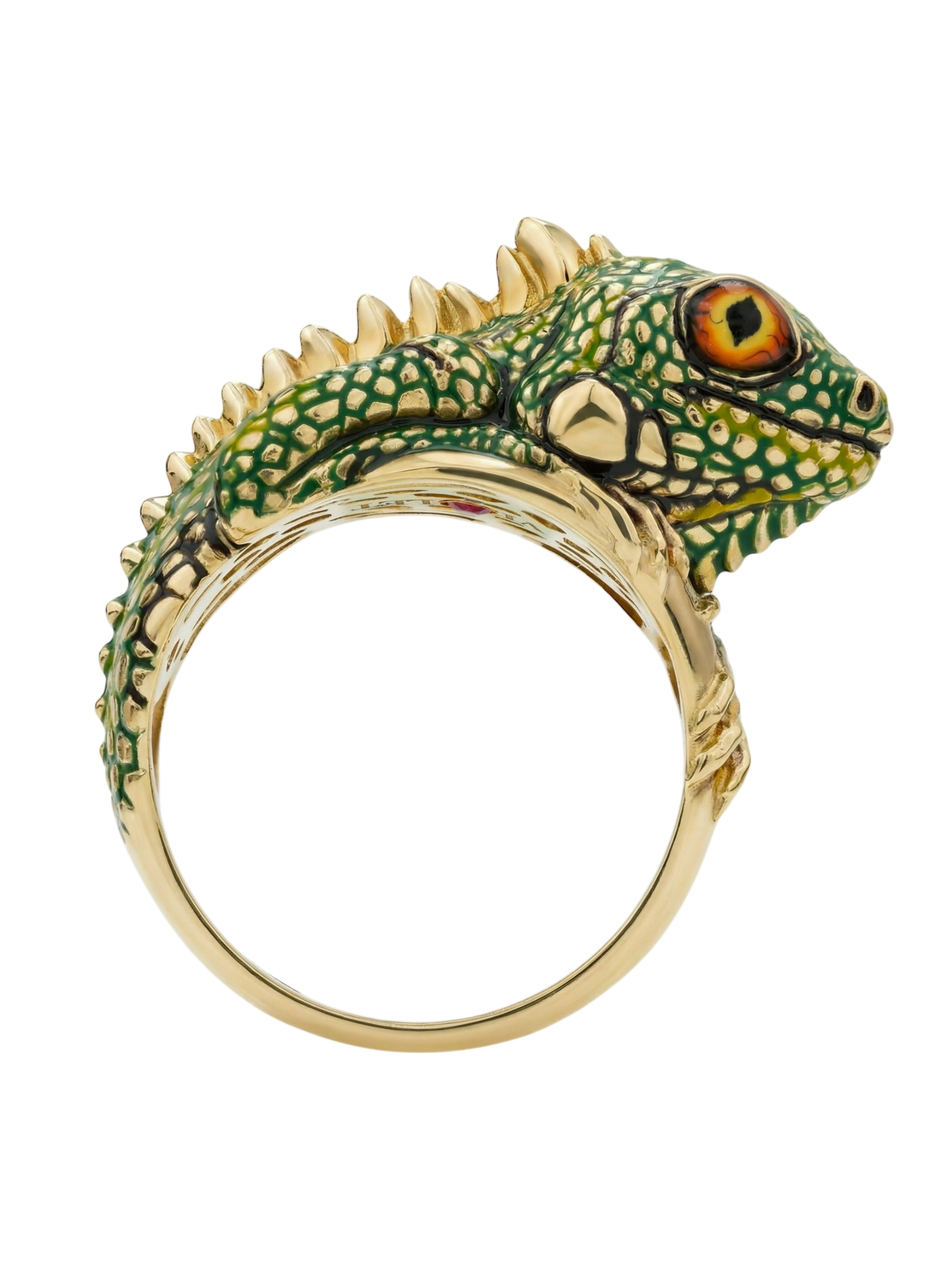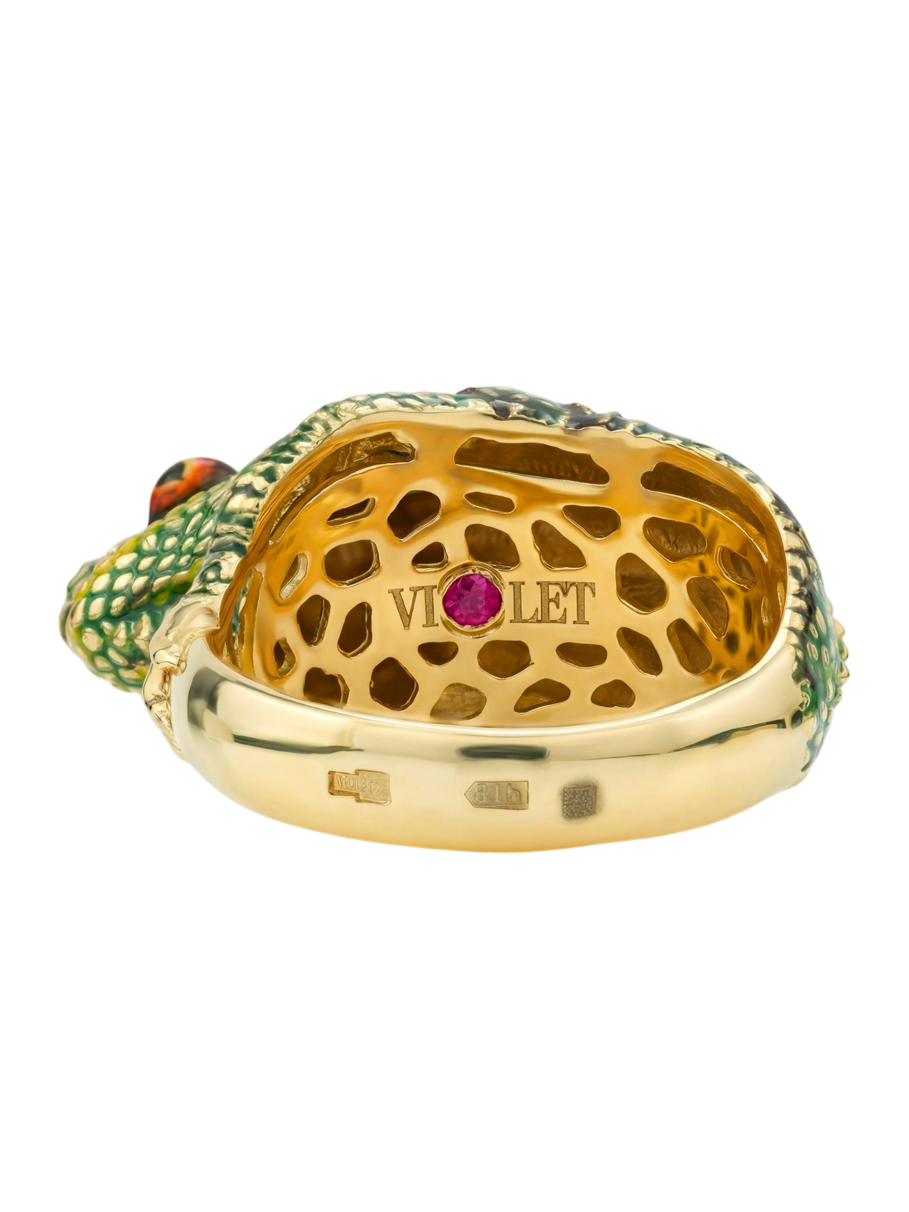 Кольцо из лимонного золота c эмалью и рубином