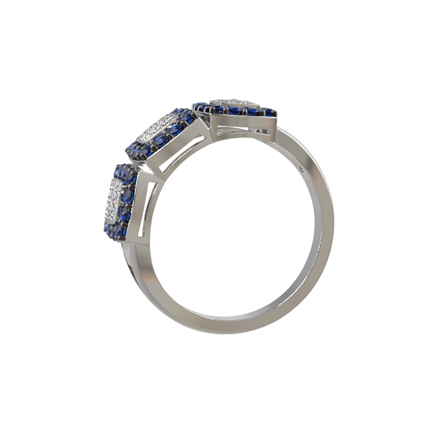 Кольцо из белого золота c бриллиантами и сапфиром
