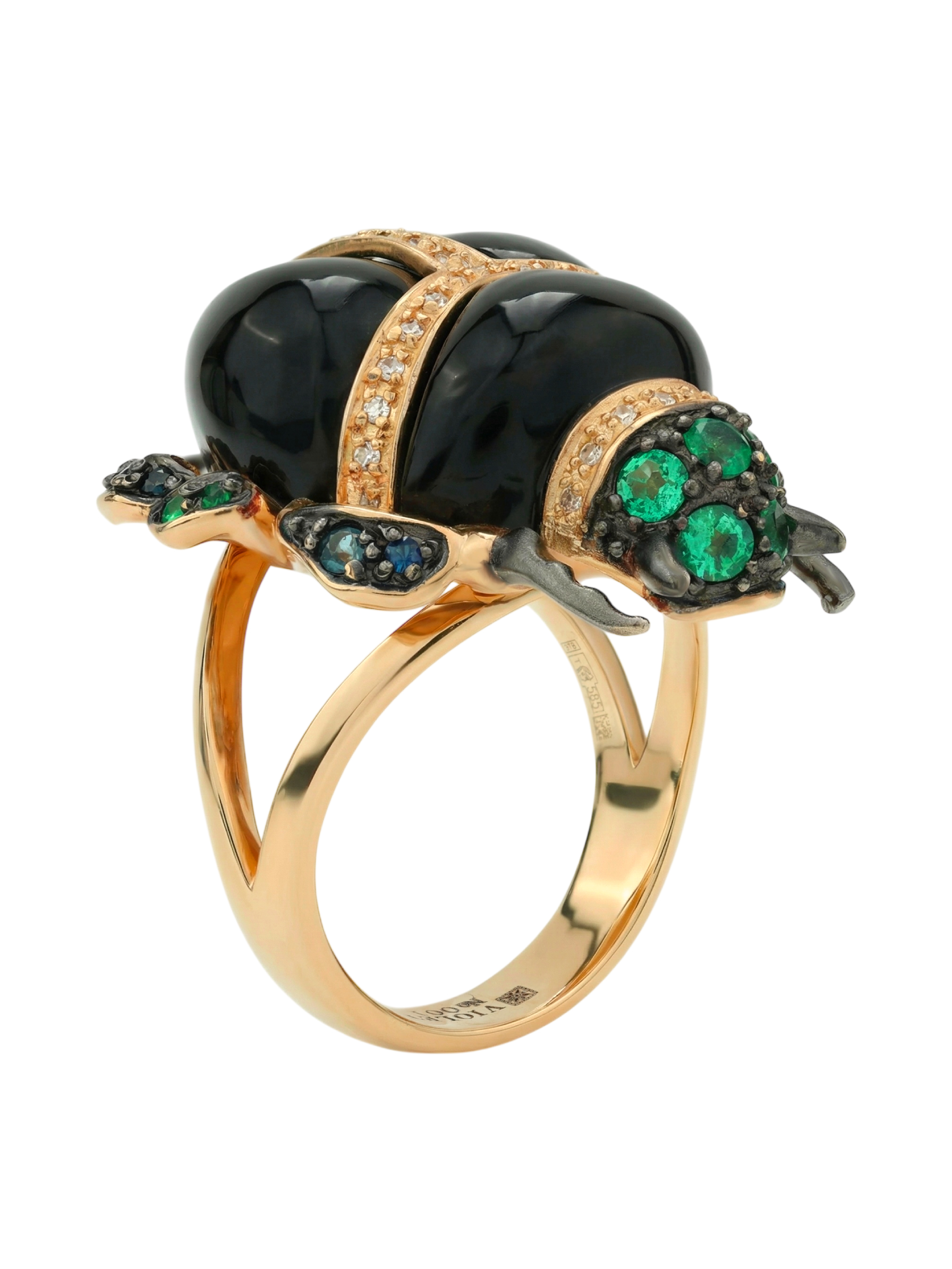 Кольцо из золота c бриллиантами, сапфиром, изумрудом и ониксом