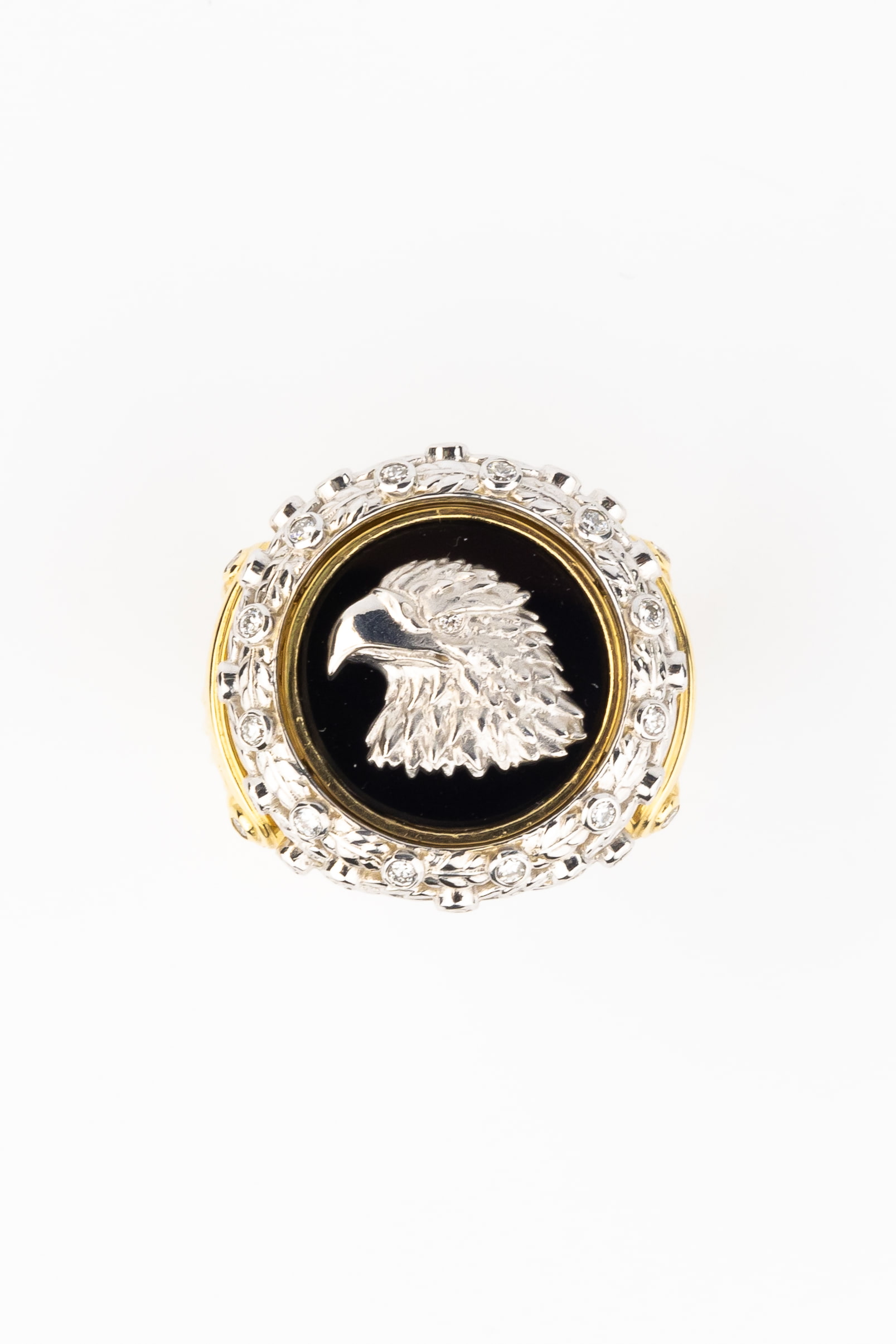 Кольцо из лимонного золота c бриллиантами и ониксом