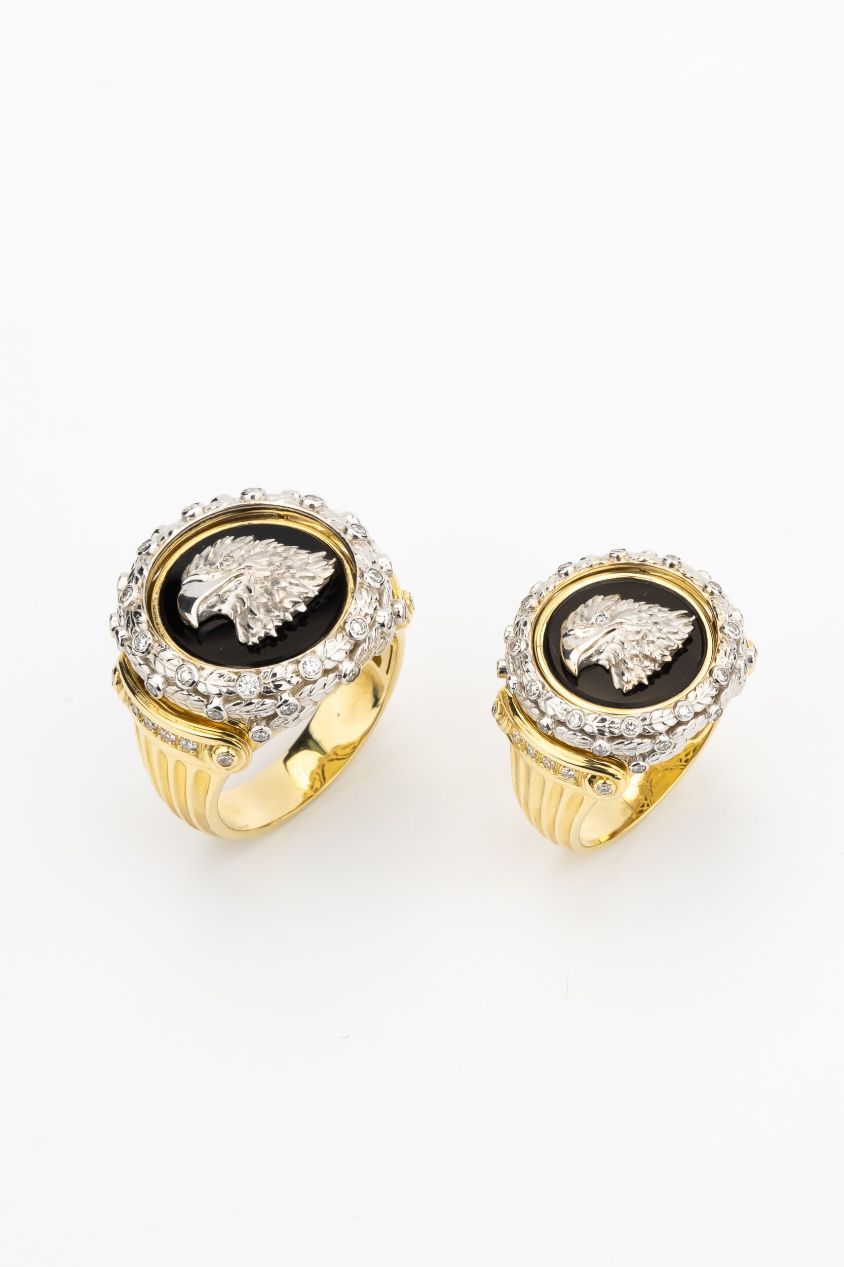 Кольцо из лимонного золота c бриллиантами и ониксом