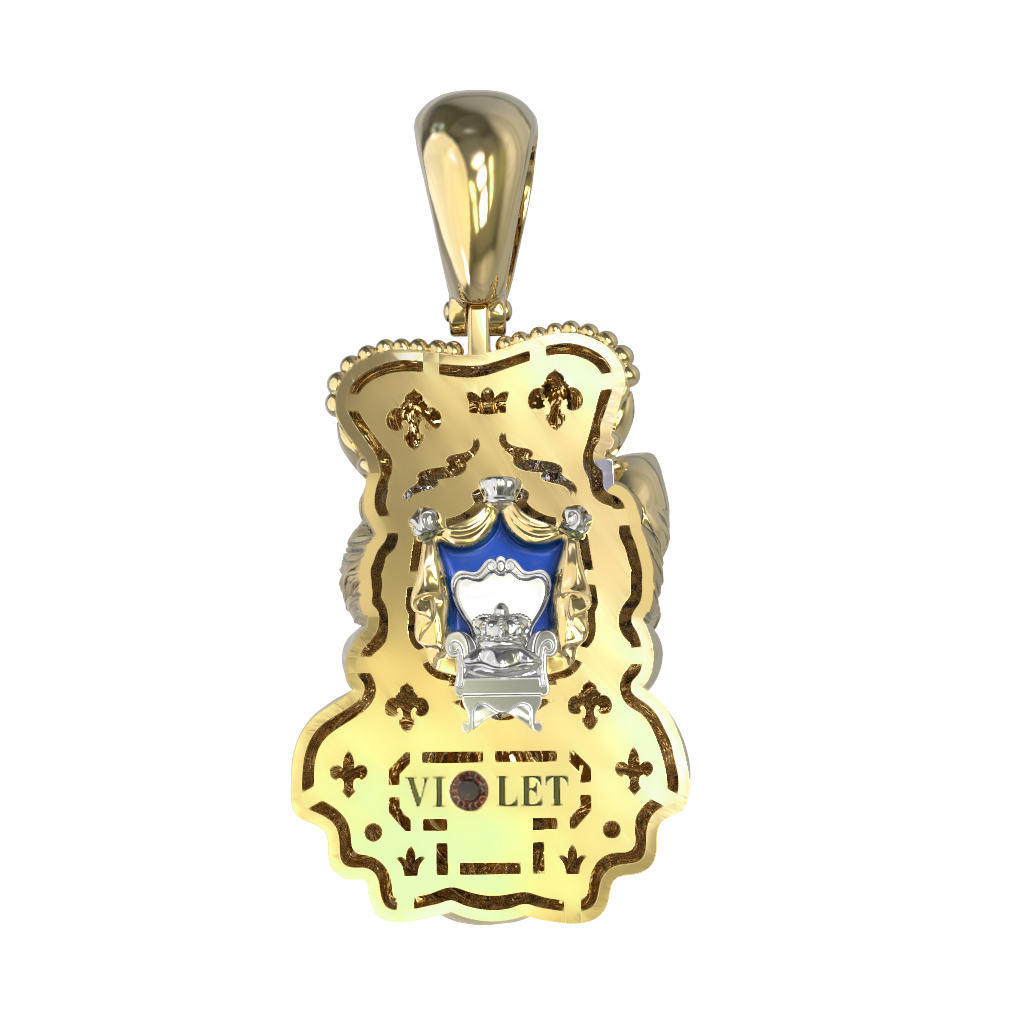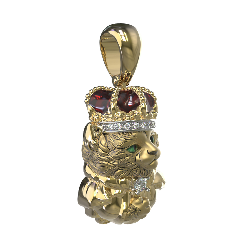 Подвеска из лимонного золота c эмаль, бриллиантами и рубином