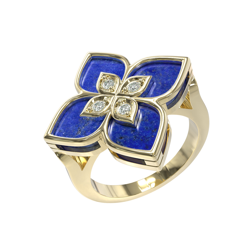 Кольцо из лимонного золота c бриллиантами и лазуритом