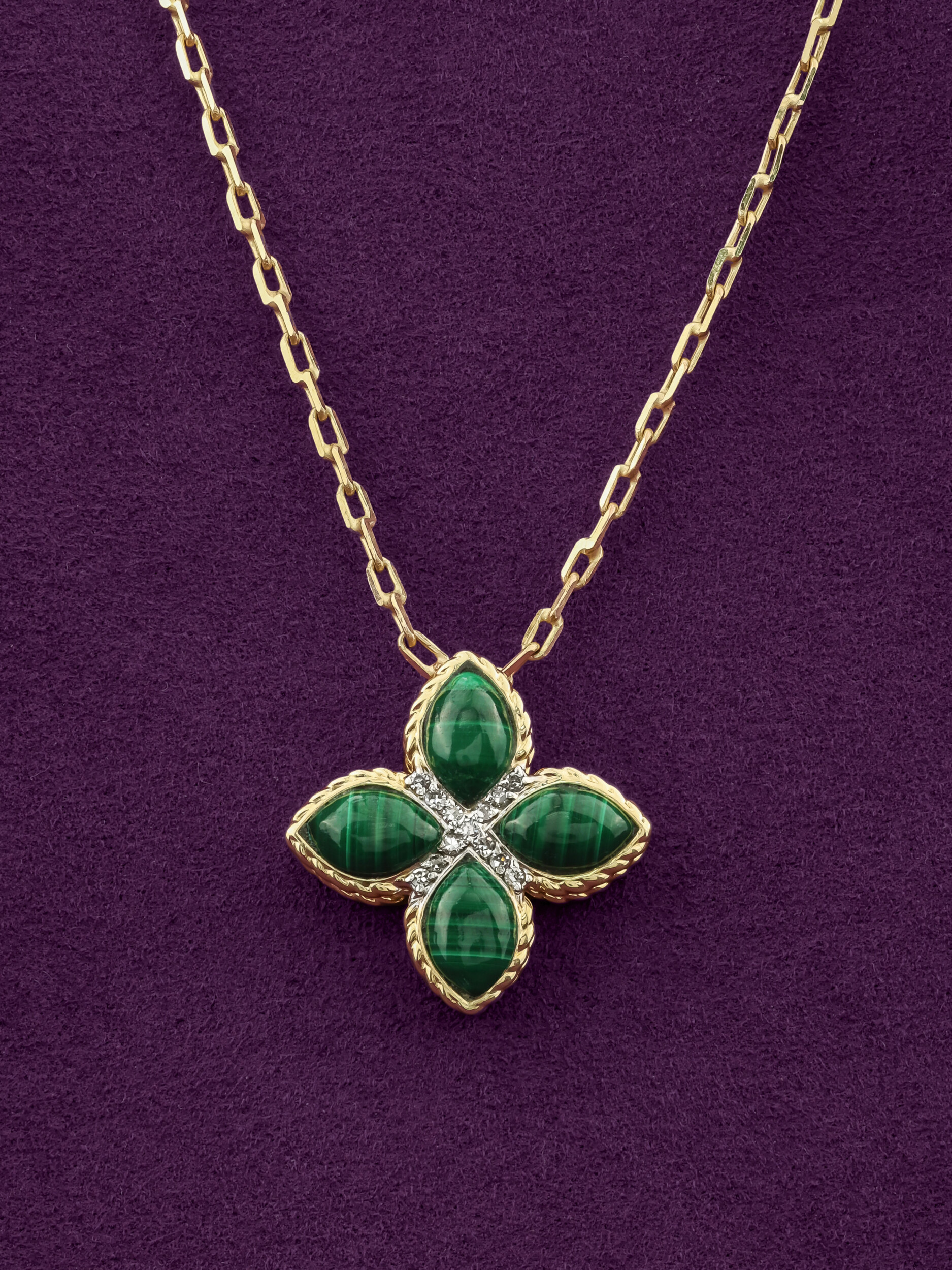 Колье из лимонного золота c бриллиантами и малахитом