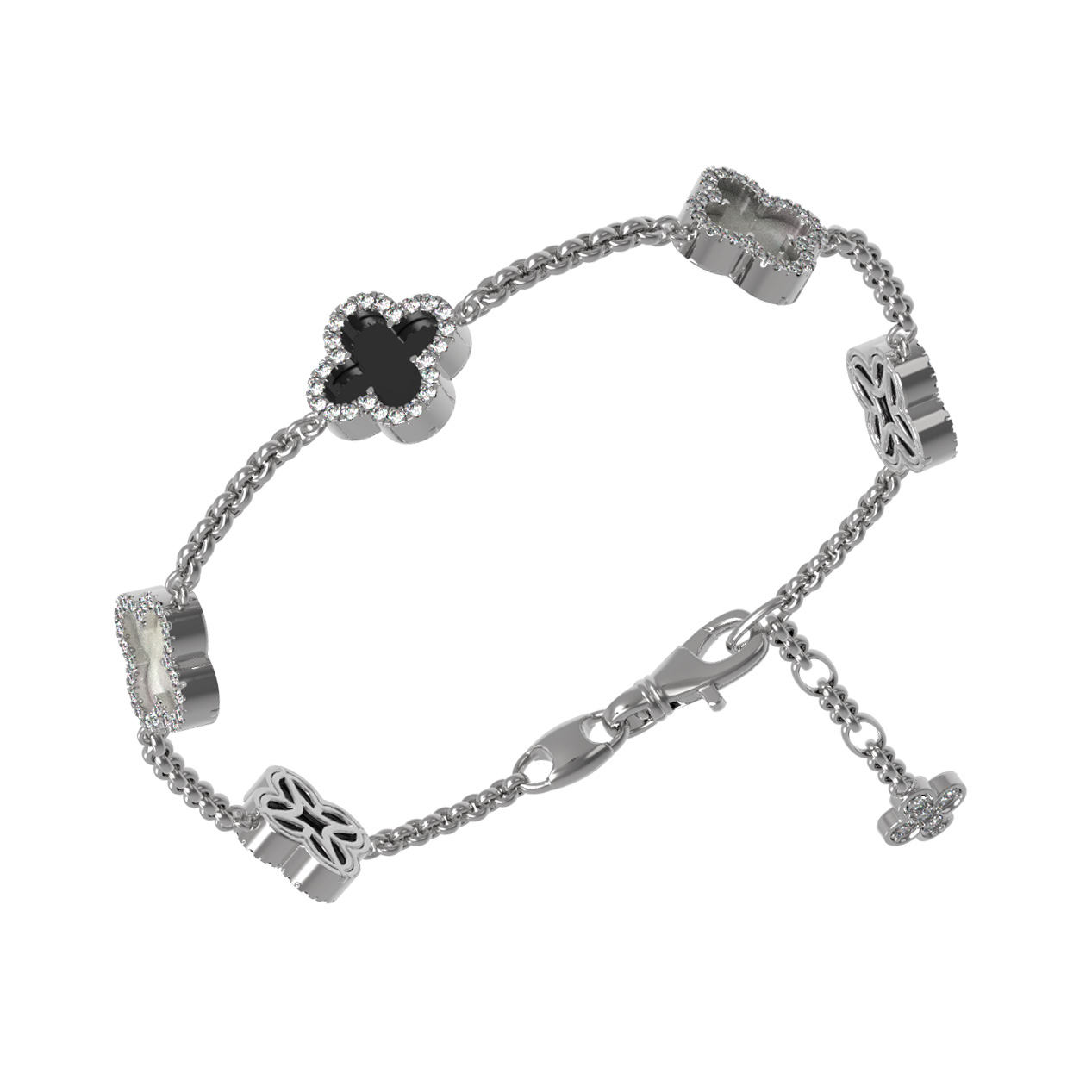 Браслет из белого золота c бриллиантами, ониксом и перламутром