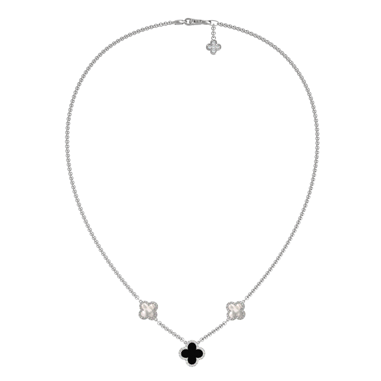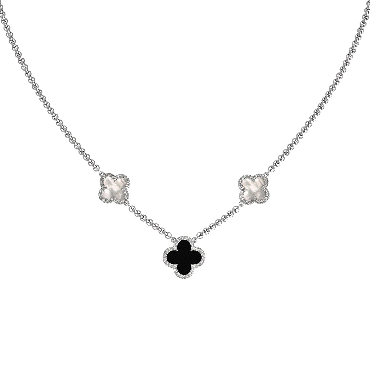 Колье из белого золота c бриллиантами, ониксом и перламутром