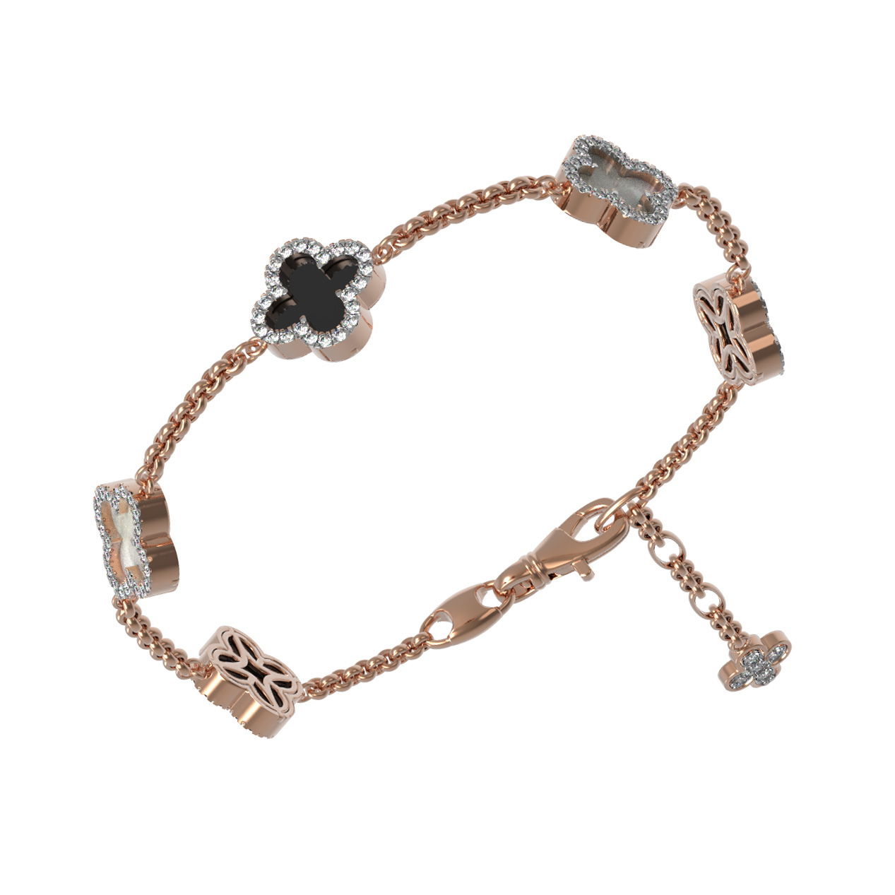 Браслет из золота c бриллиантами, ониксом и перламутром