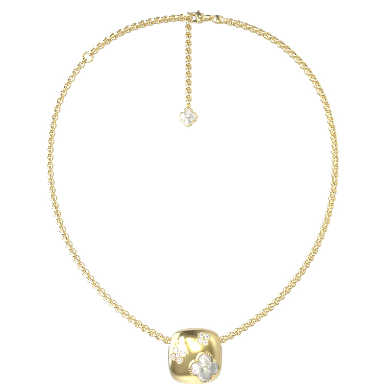 Колье из лимонного золота c бриллиантами и перламутром