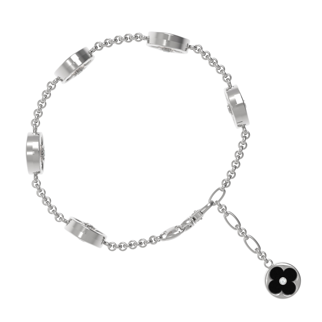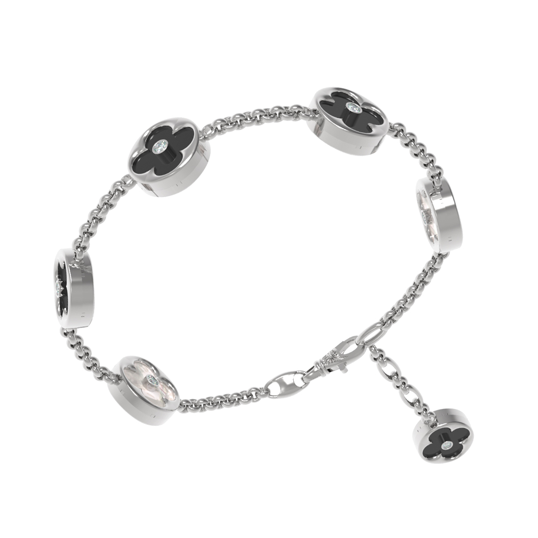 Браслет из белого золота c бриллиантами, ониксом и перламутром