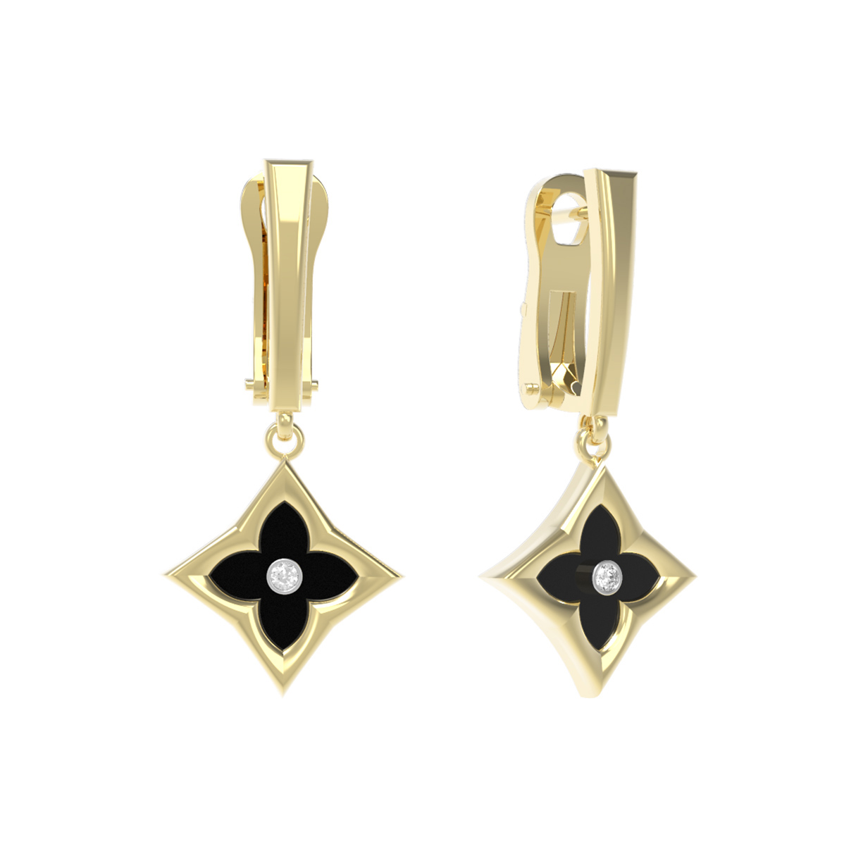 Серьги из лимонного золота c бриллиантами и ониксом