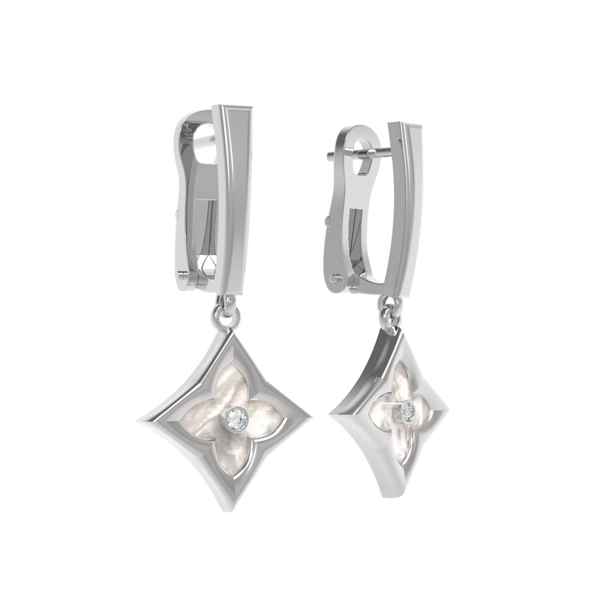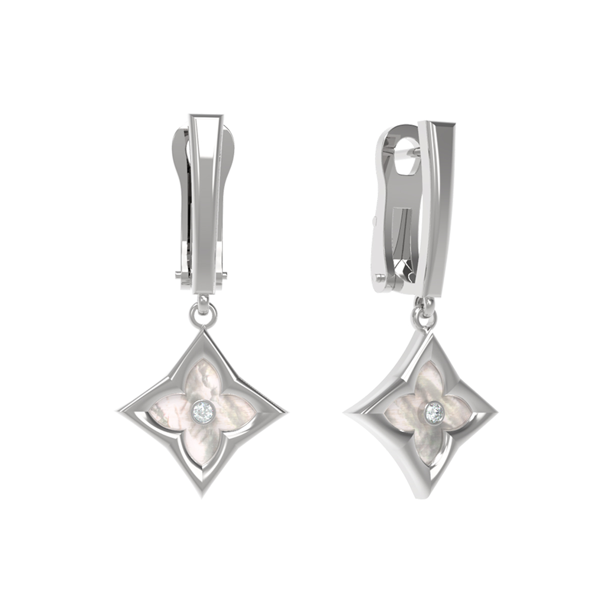 Серьги из белого золота c бриллиантами и перламутром