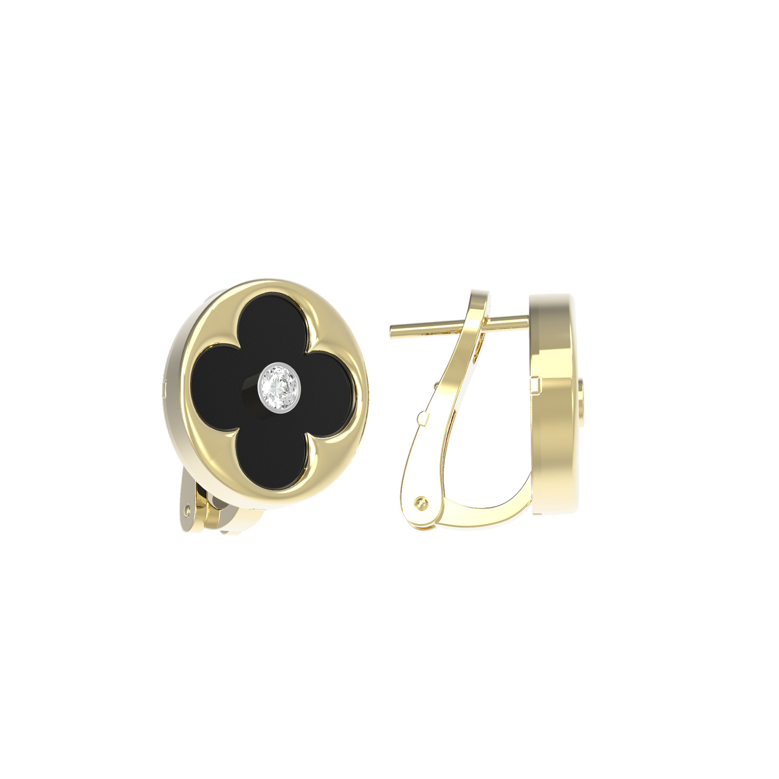 Серьги из лимонного золота c бриллиантами и ониксом