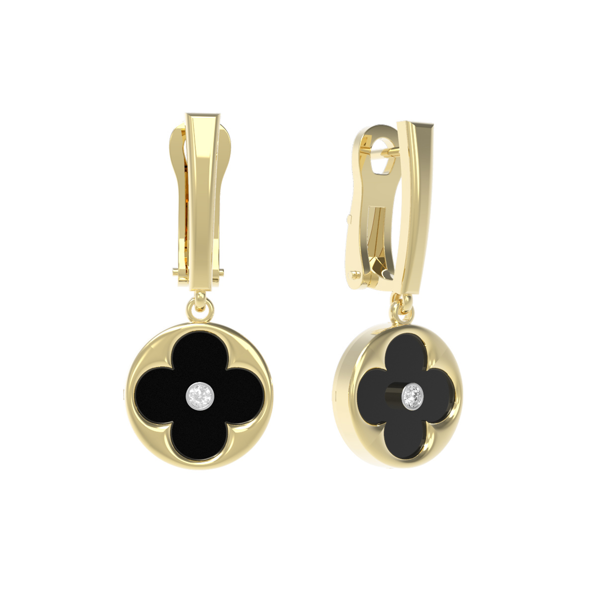 Серьги из лимонного золота c бриллиантами и ониксом