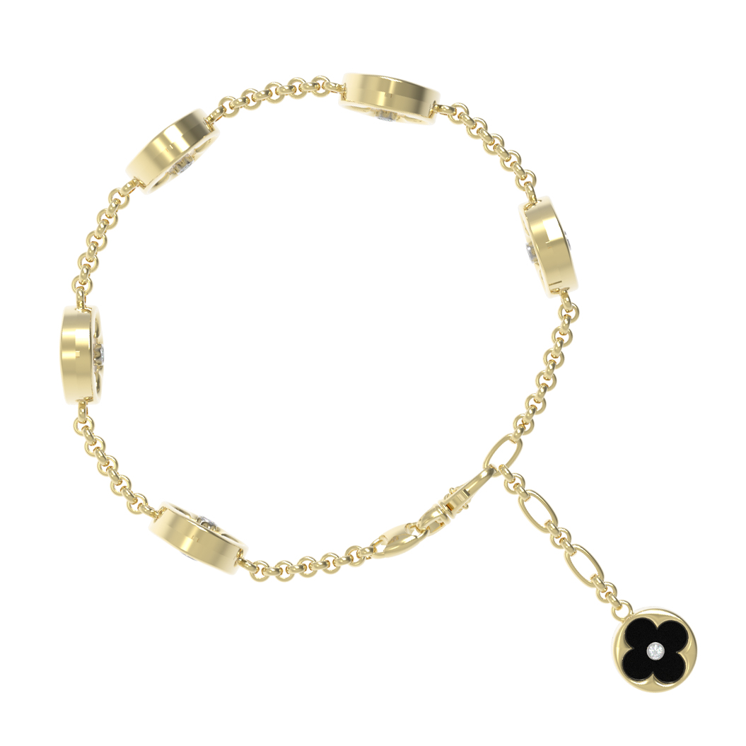 Браслет из лимонного золота c бриллиантами, ониксом и перламутром
