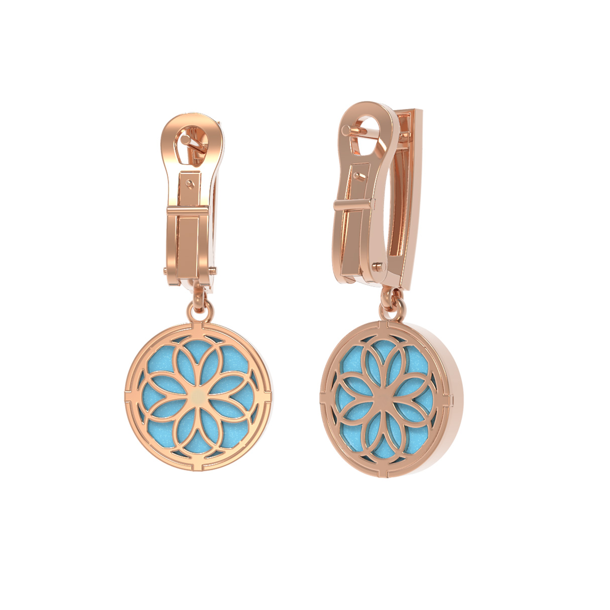 Серьги из золота c бриллиантами и бирюзой