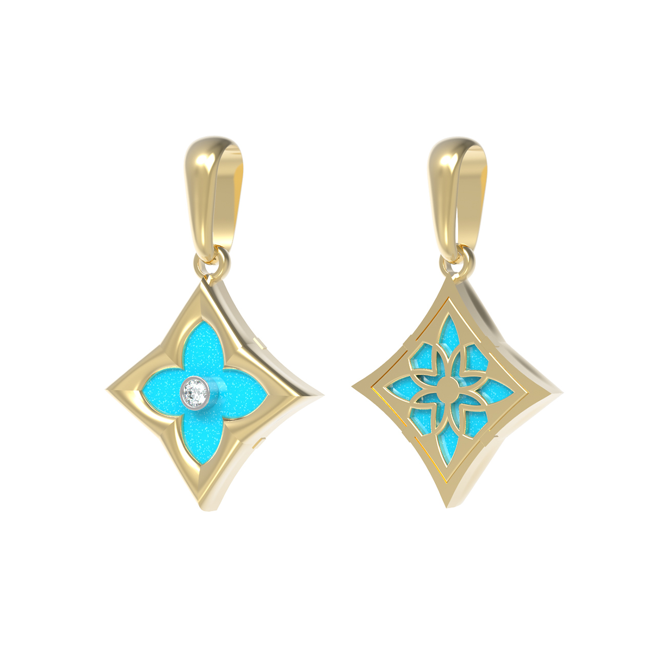 Подвеска из лимонного золота c бриллиантами и бирюзой
